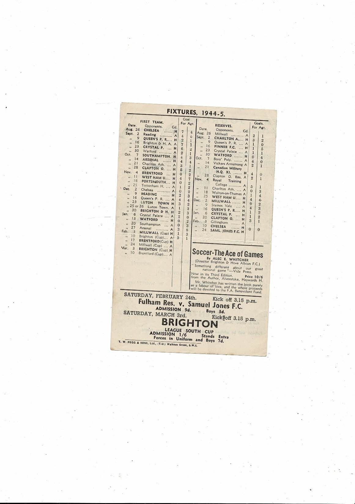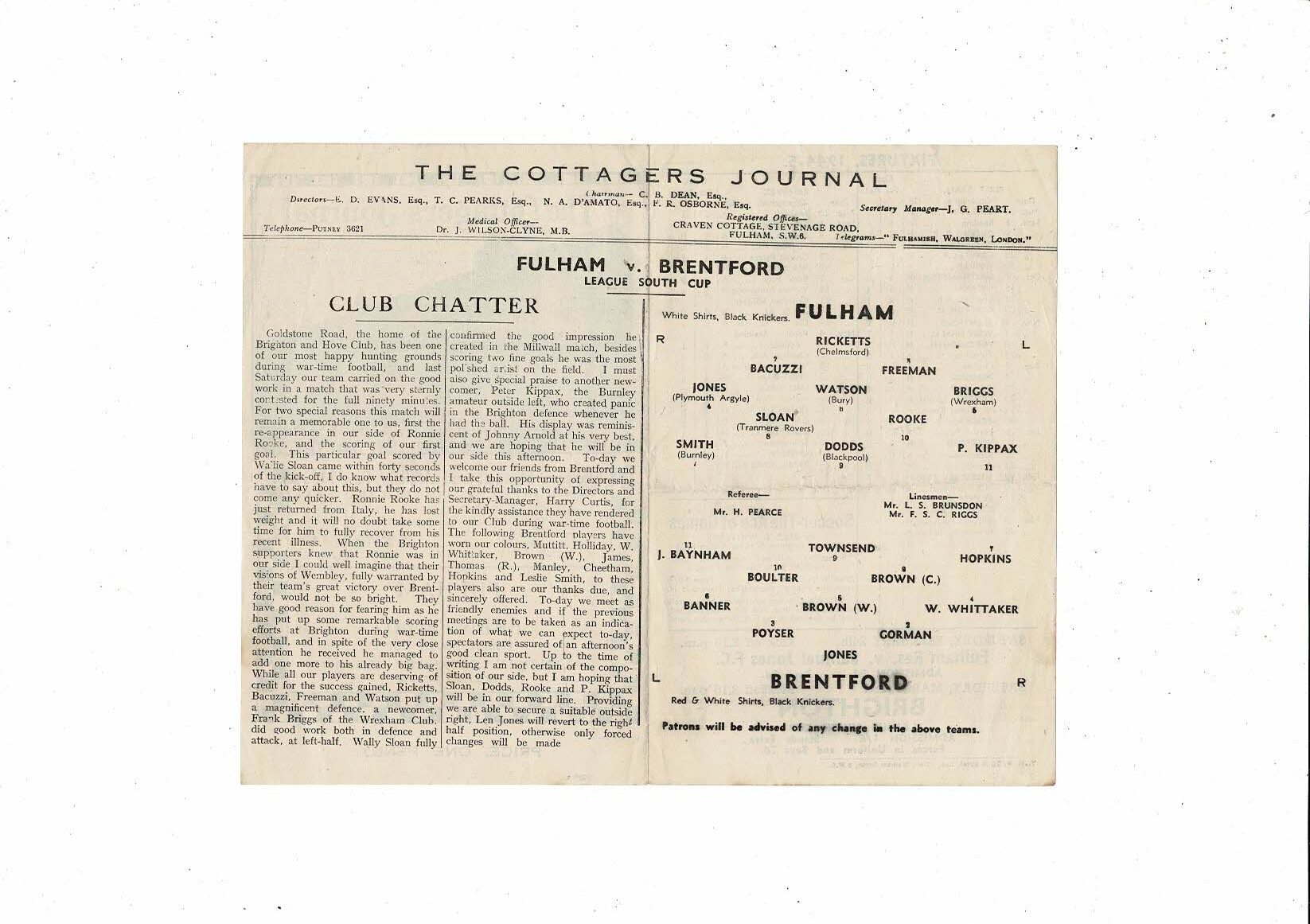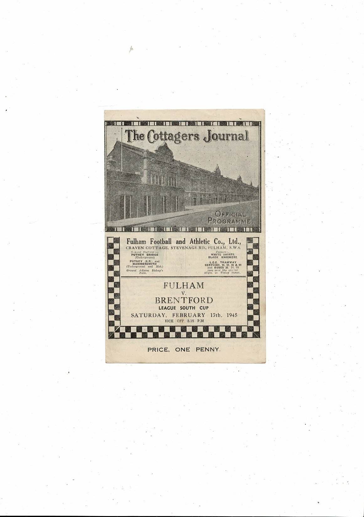 1944/45 Fulham v Brentford League South Cup Football Programme