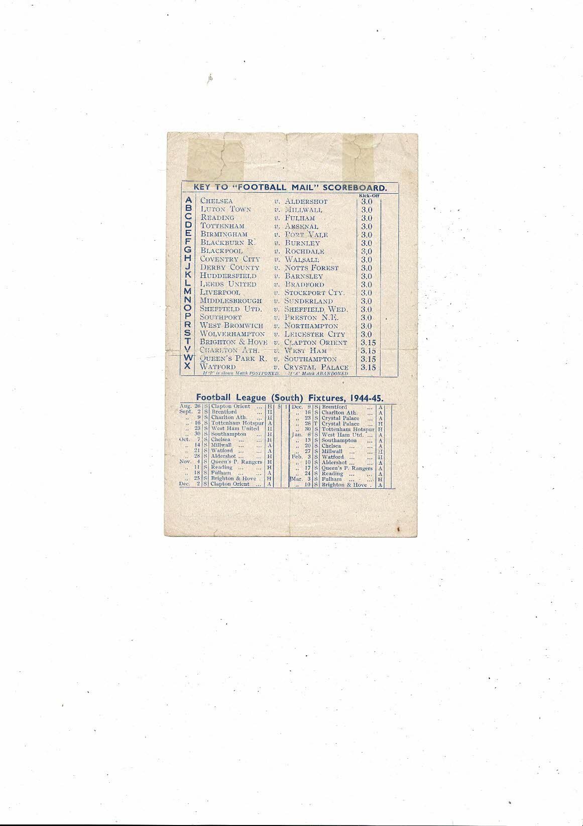 1944/45 Portsmouth v Brentford Football Programme. September 2nd