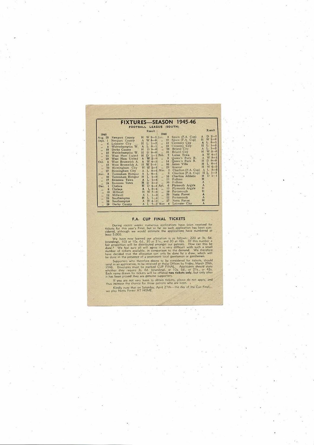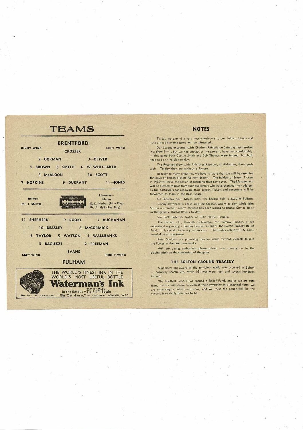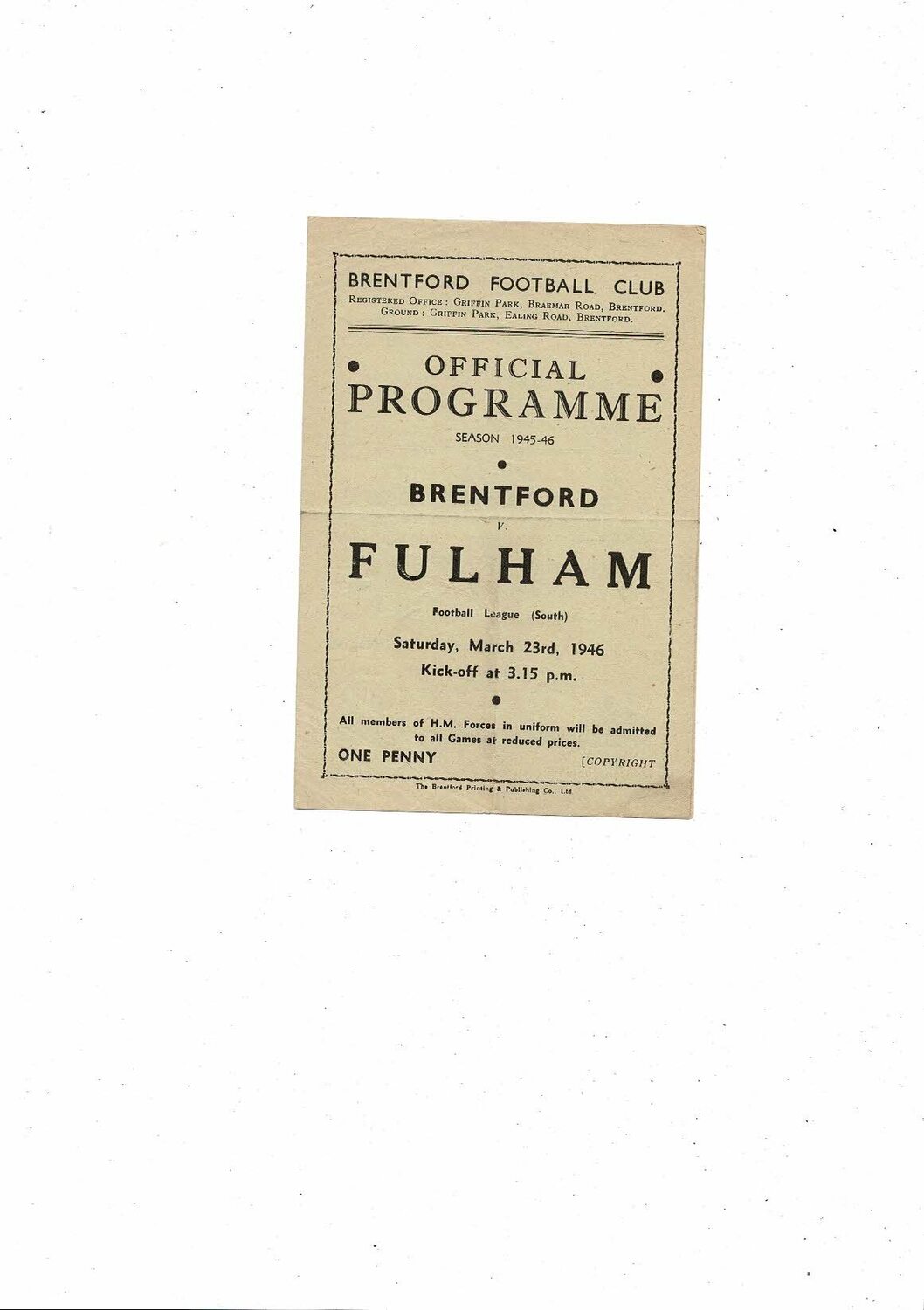 1945/46 Brentford v Fulham Football Programme