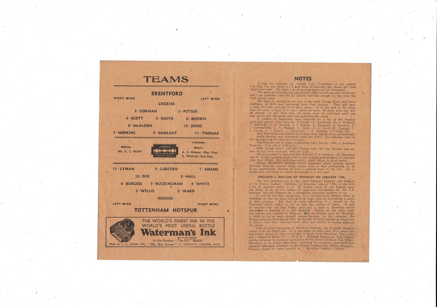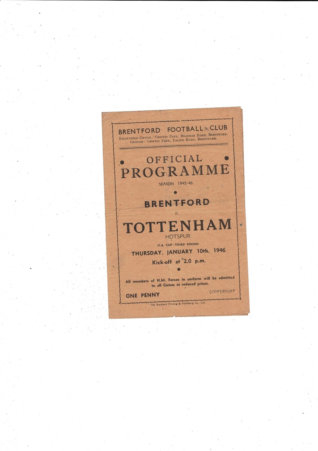 1945/46 Brentford v Tottenham Hotspur Football Programme