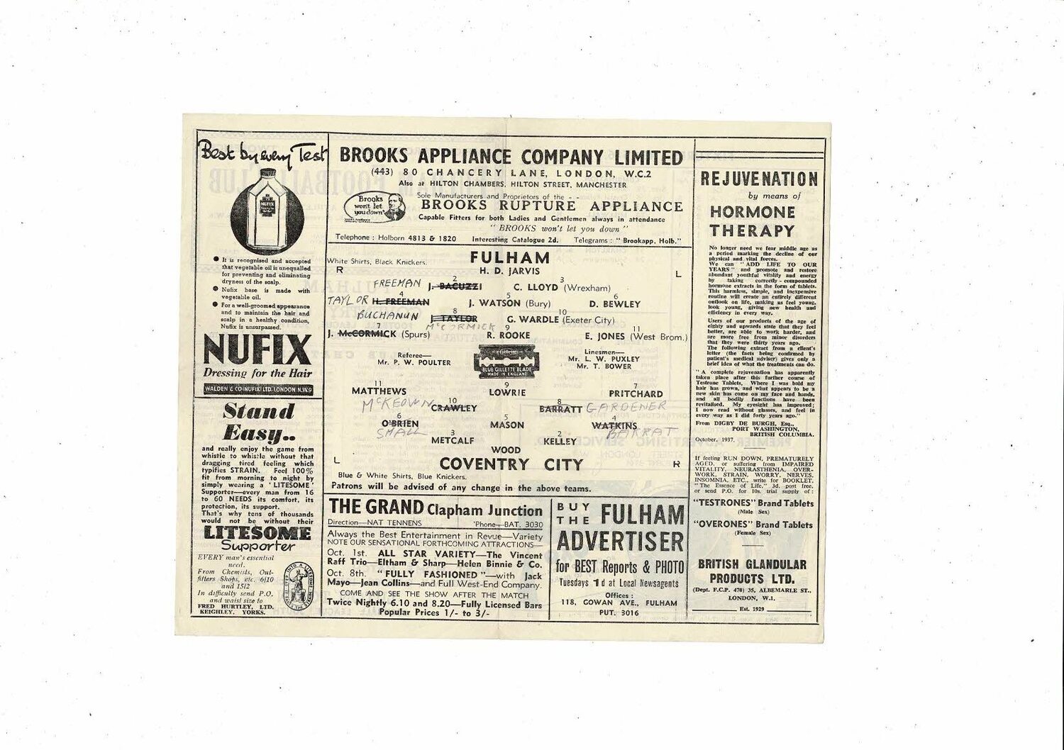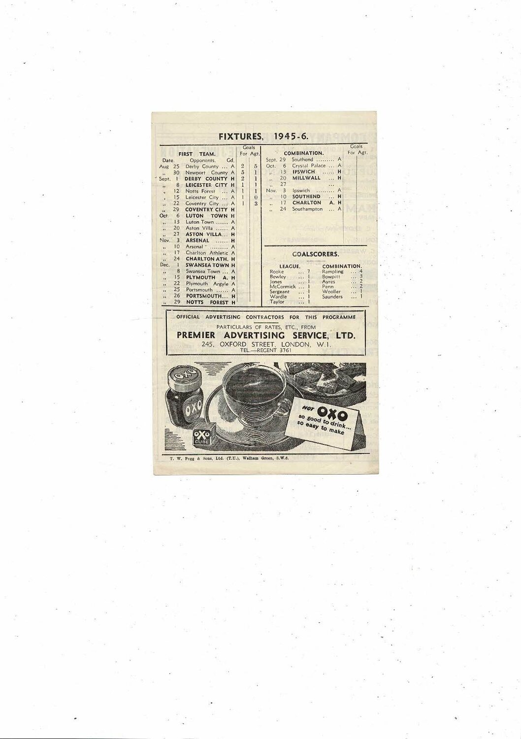 1945/46 Fulham v Coventry City Football Programme