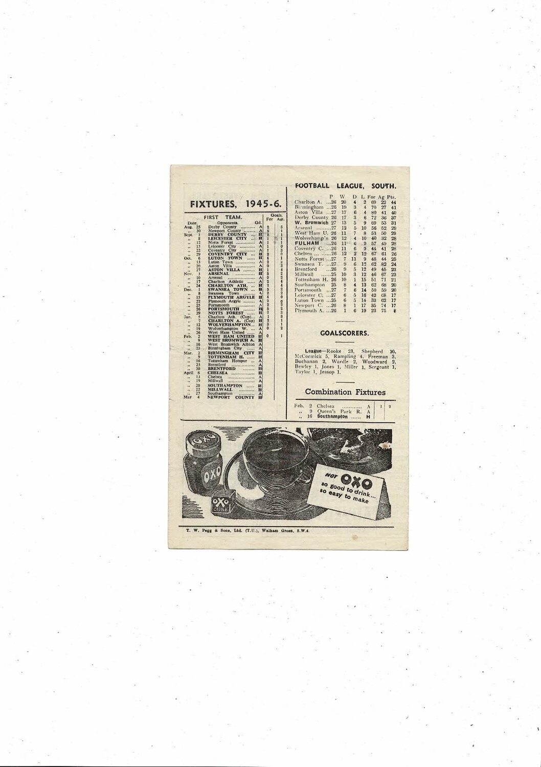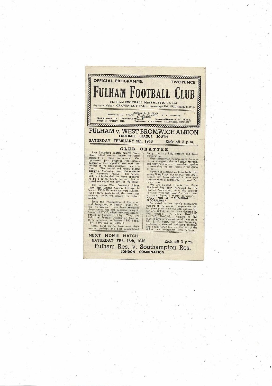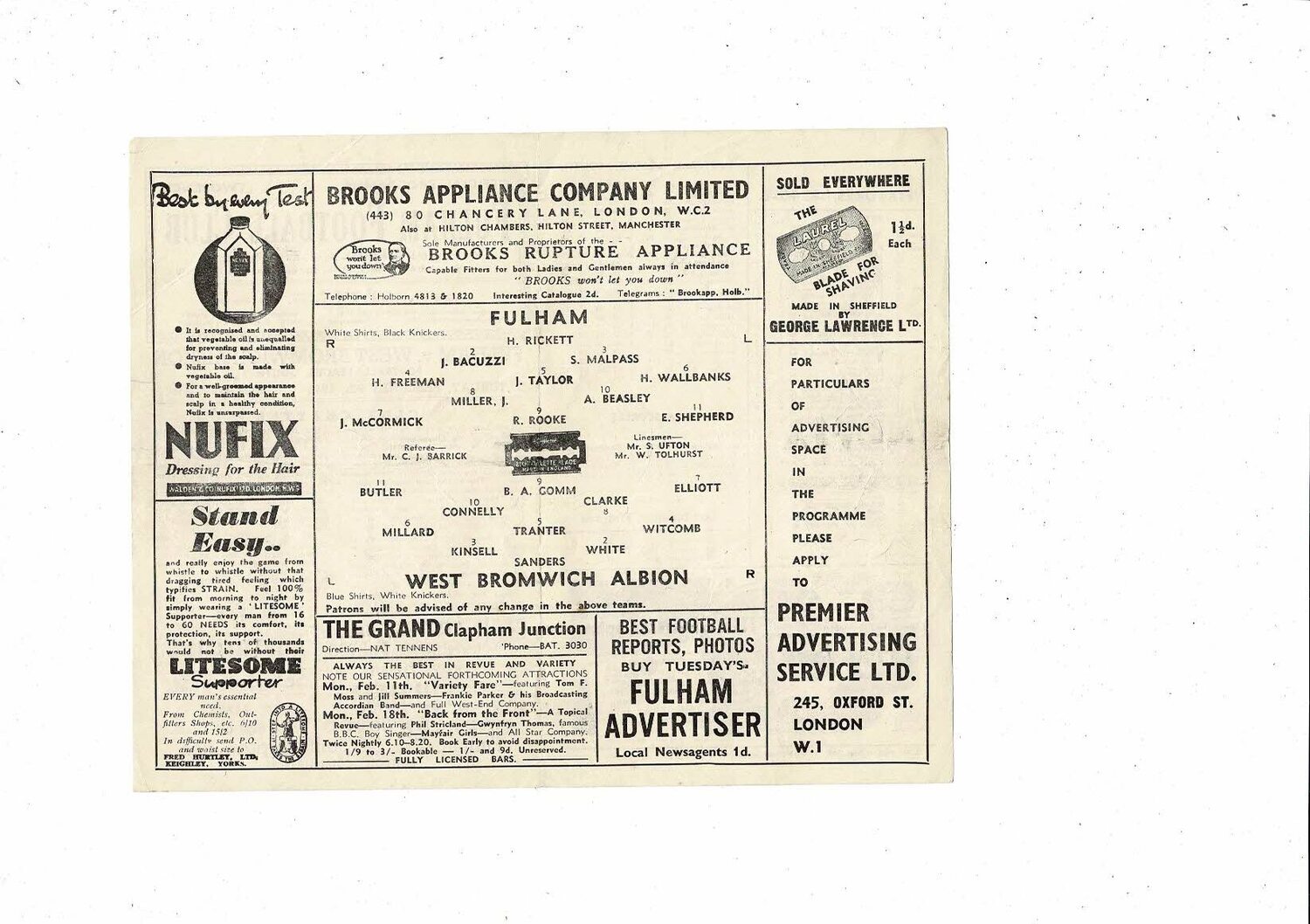 1945/46 Fulham v West Bromwich Albion Football Programme