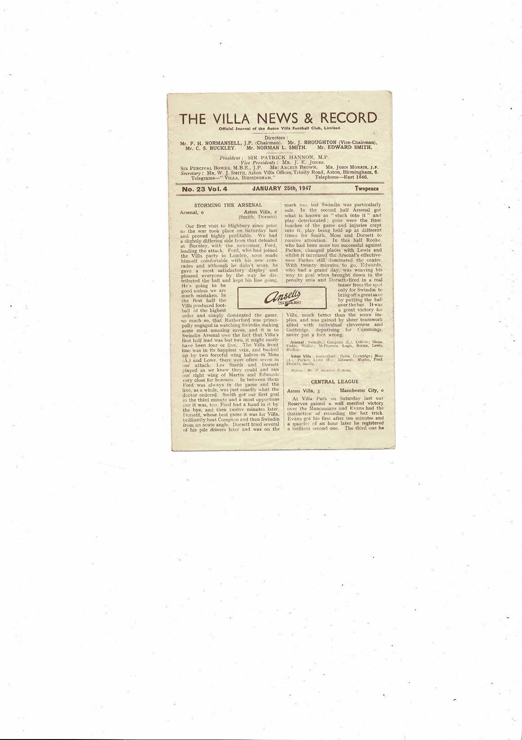 1946/47 Aston Villa v Blackpool Football Programme