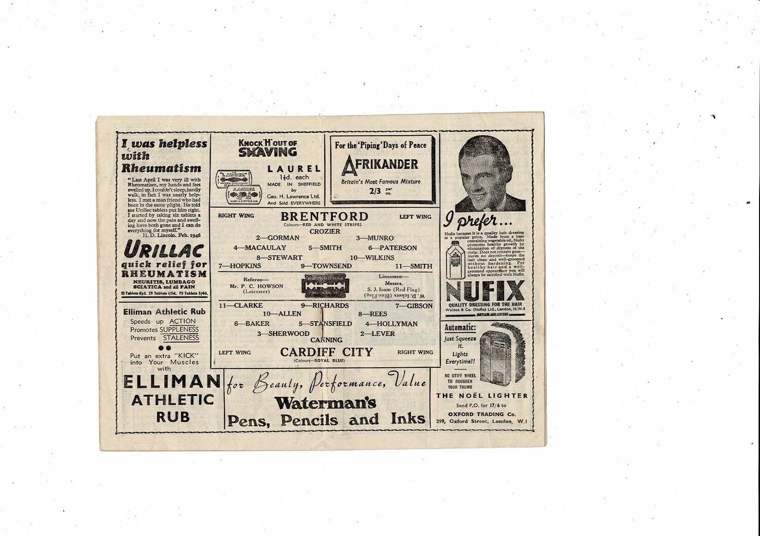 1946/47 Brentford v Cardiff City FA Cup Football Programme