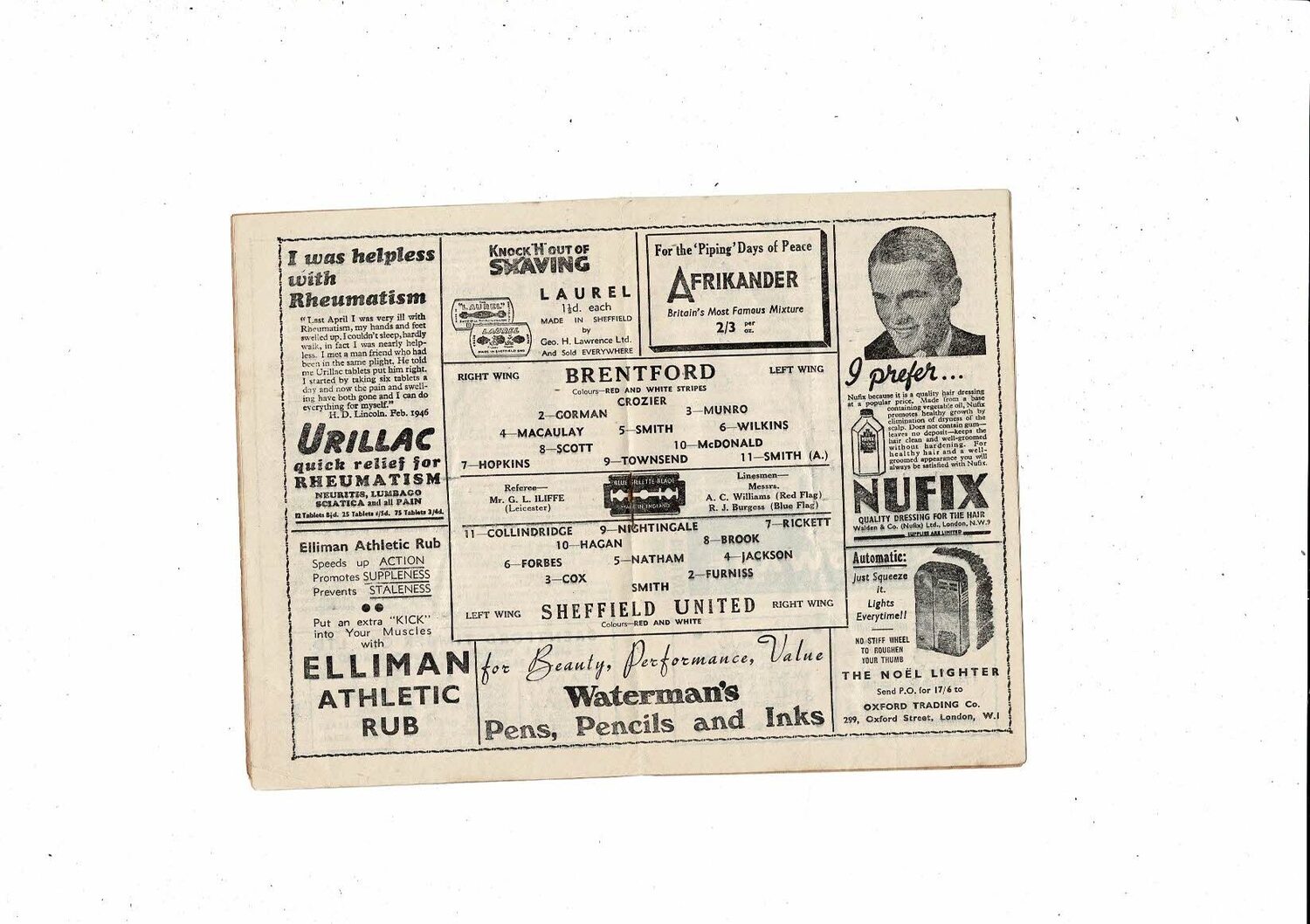 This Original Football Programme is creased also has a fold with some staining, rusty staple, small tear at both ends of spine, small corner piece missing & number on front