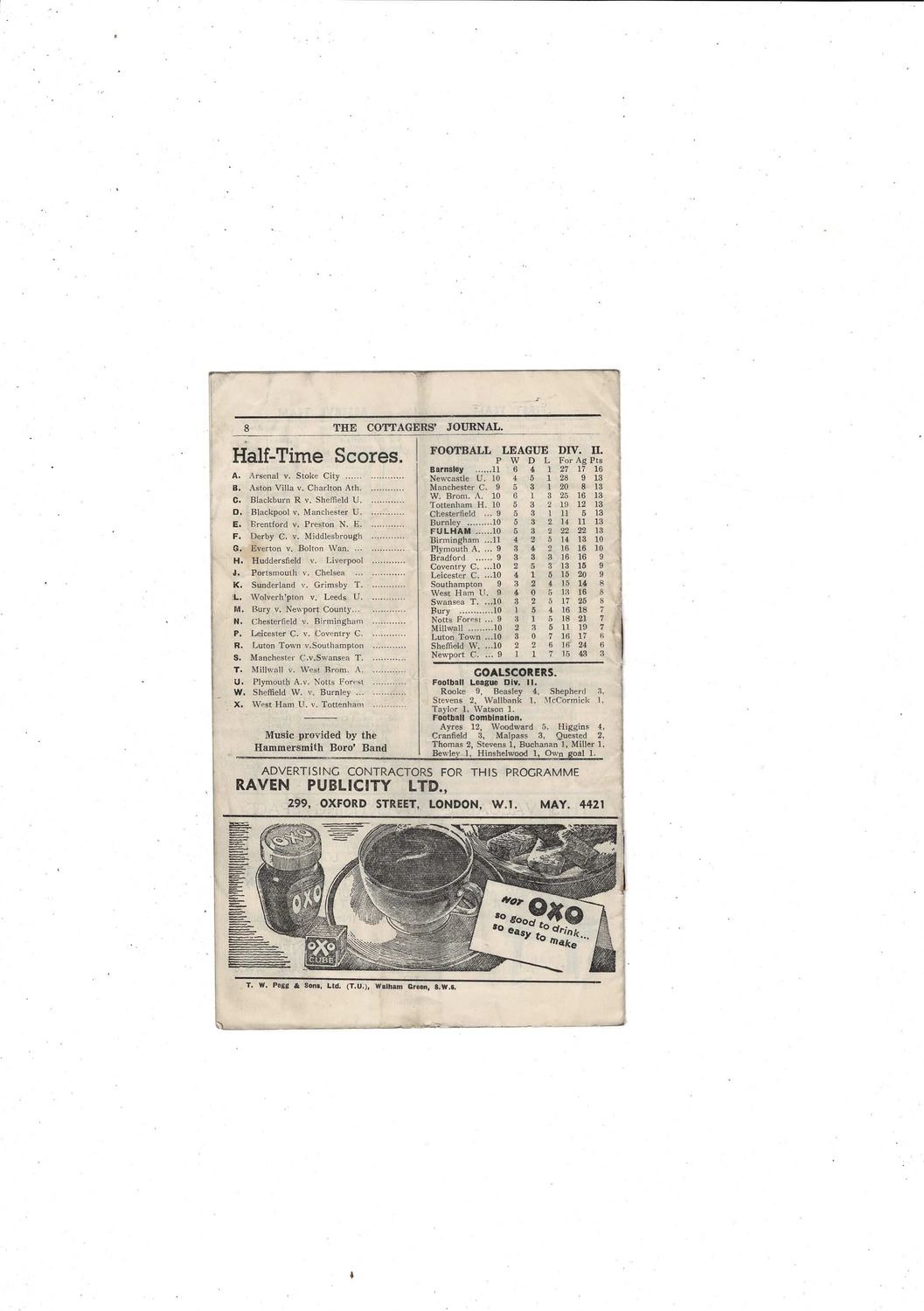 This original Football Programme is creased also has a fold with some staining & rusty staples. No handwriting