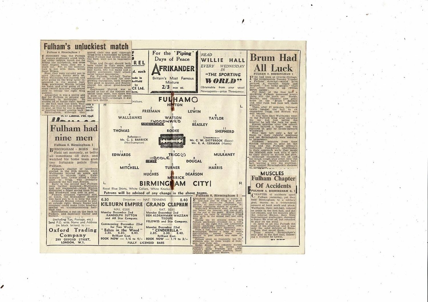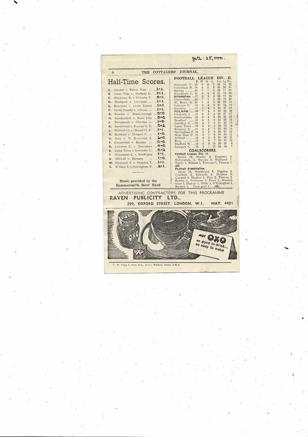 This original Football Programme is creased also has a fold with some staining, rusty staples, several press cuttings stuck on inside pages, score, team changes, attendance & half times noted