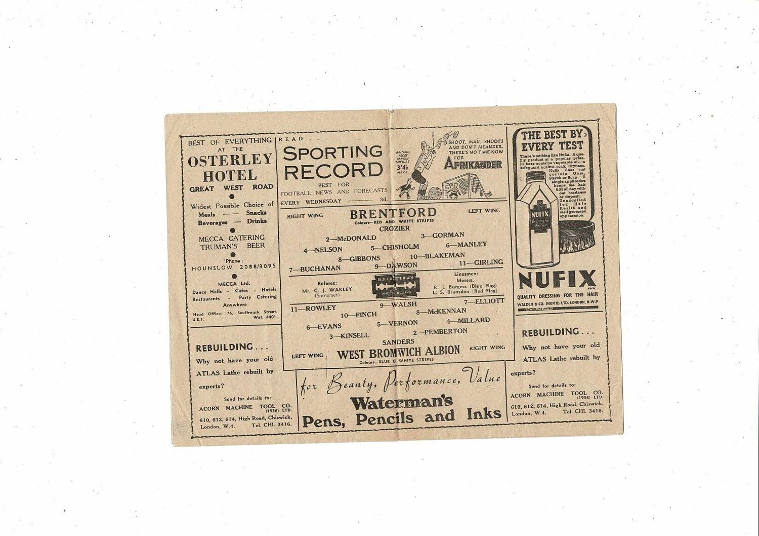 1947/48 Brentford v West Bromwich Albion Football Programme