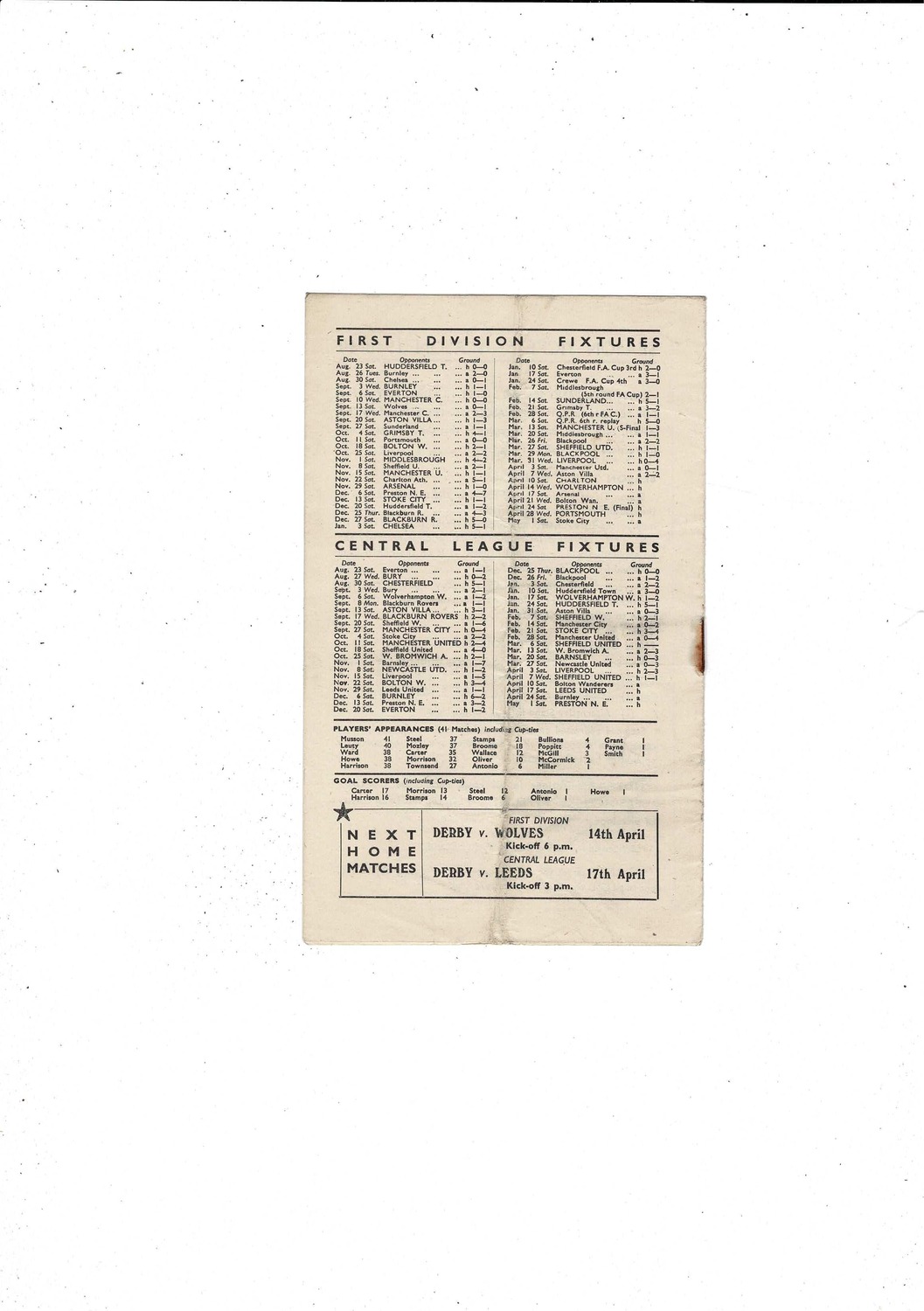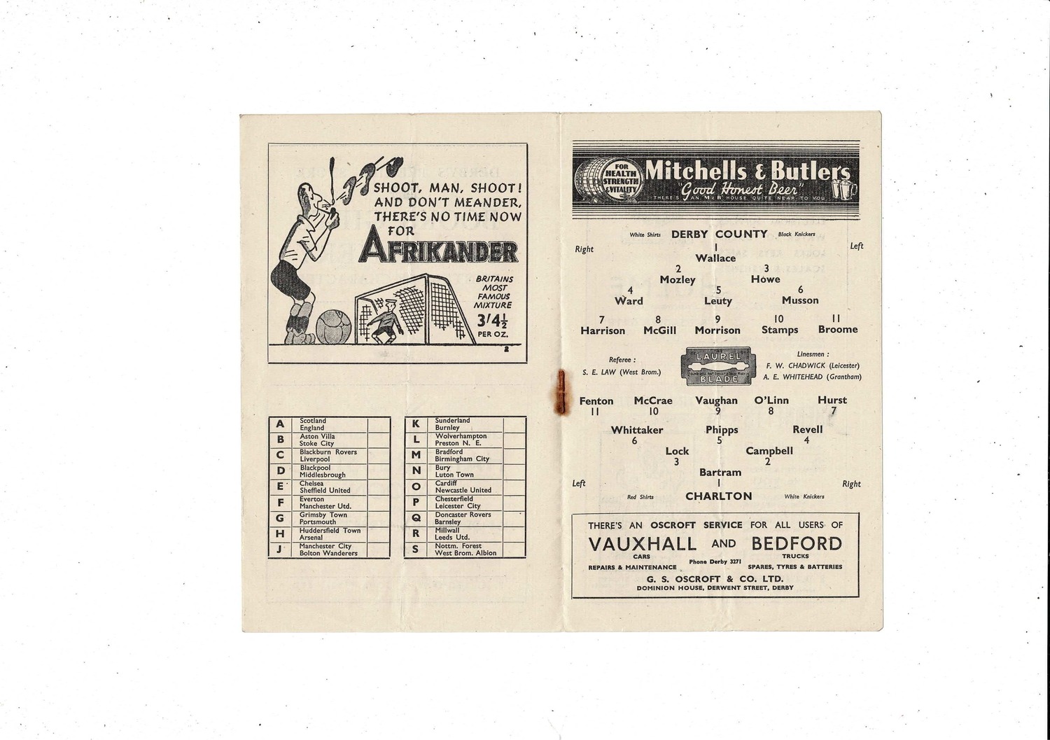 1947/48 Derby County v Charlton Athletic Football Programme