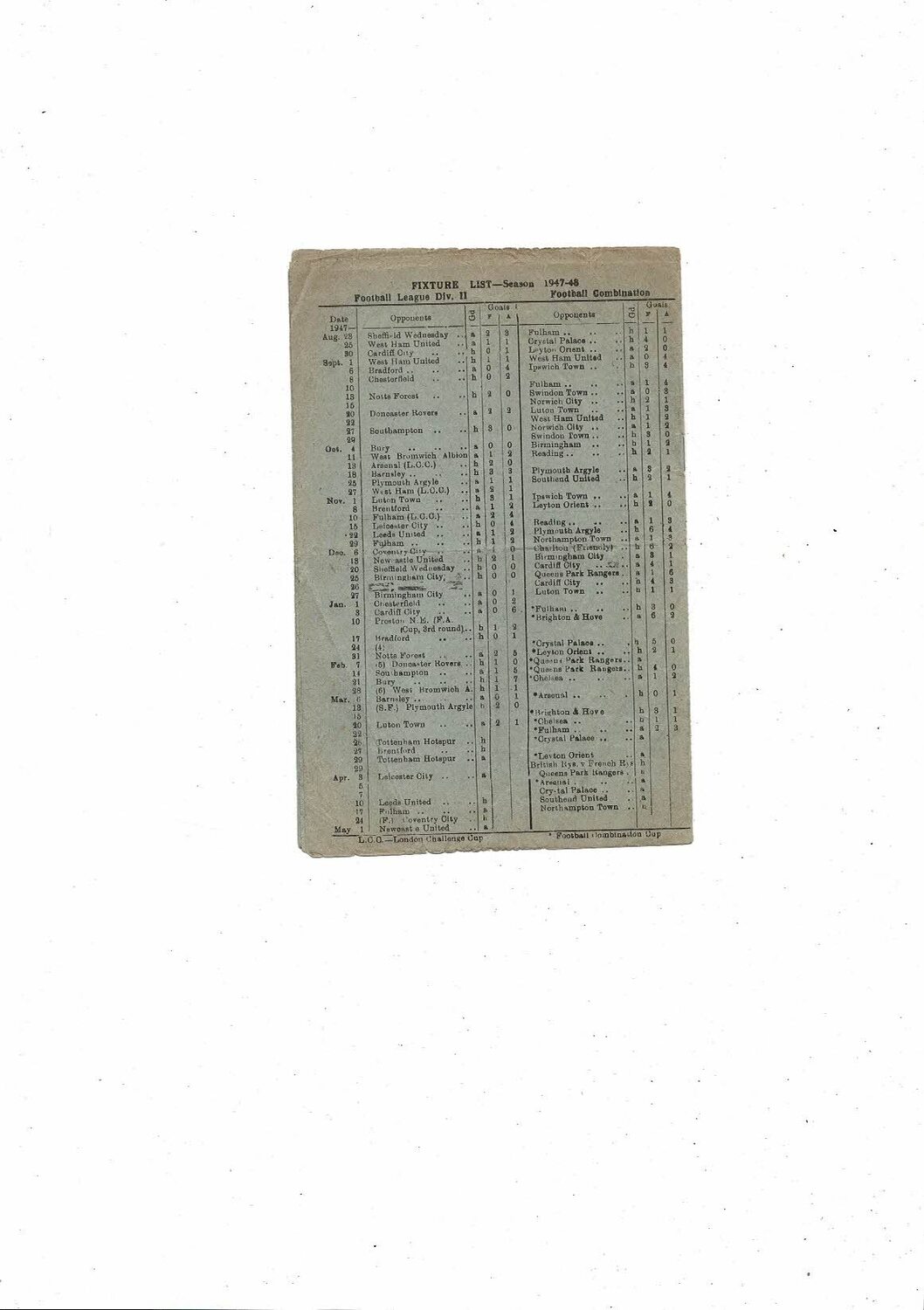 This original Football Programme is creased & folded with some minor staining & several small tears. No handwriting. Please see scans