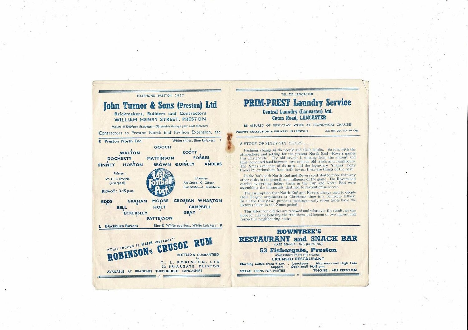 1949/50 Preston v Blackburn Rovers Football Programme