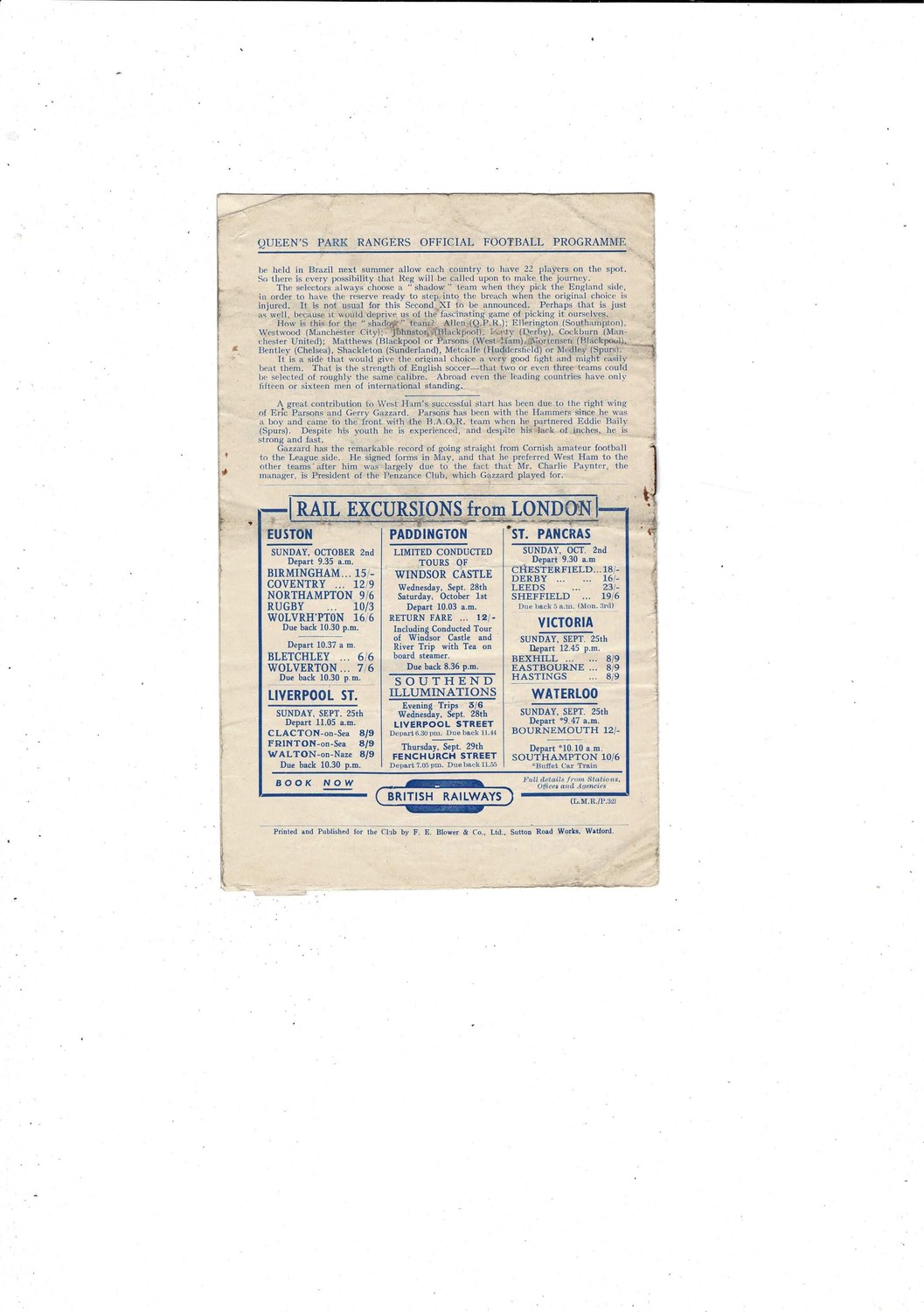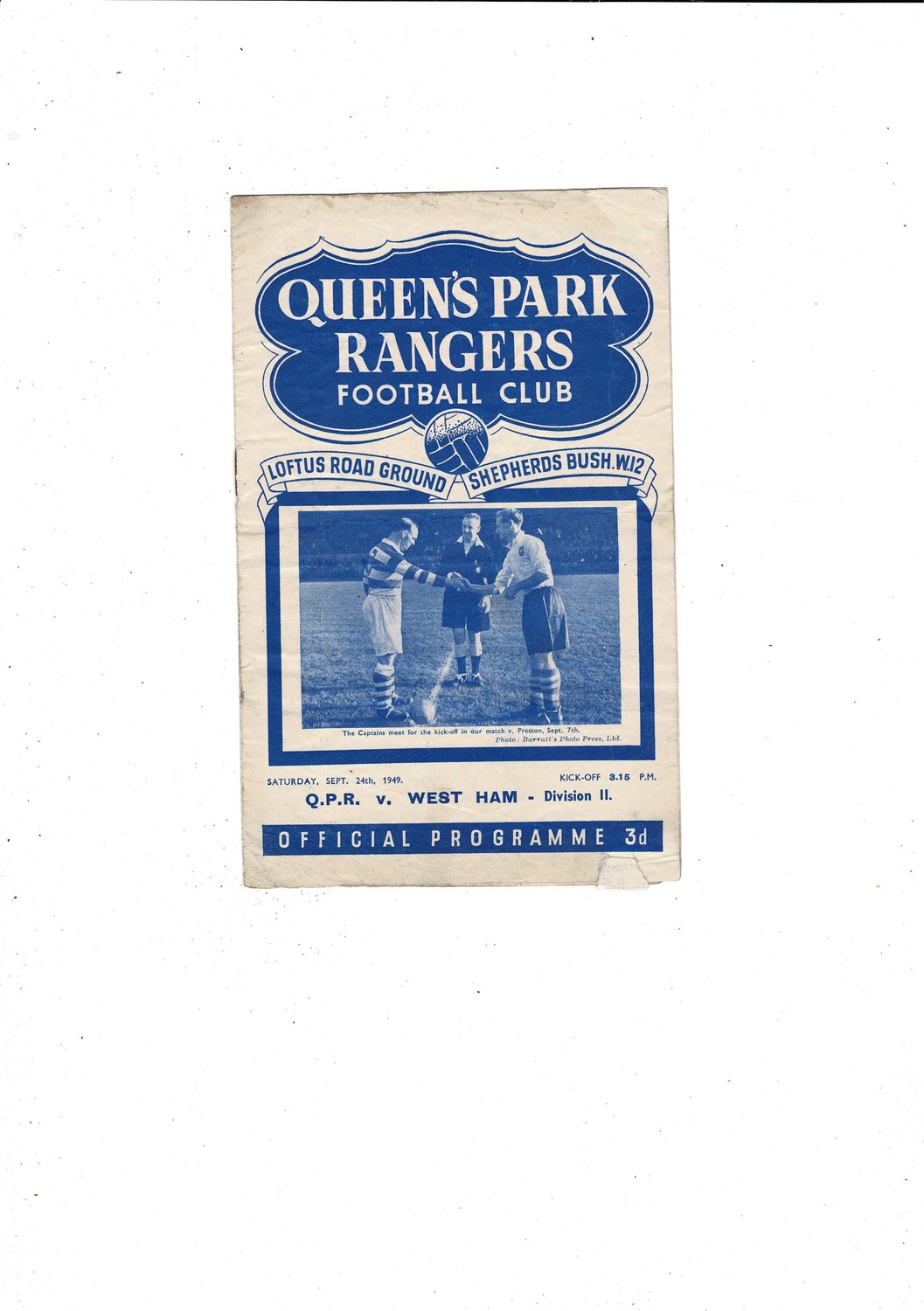 1949/50 Queens Park Rangers v West Ham United Football Programme
