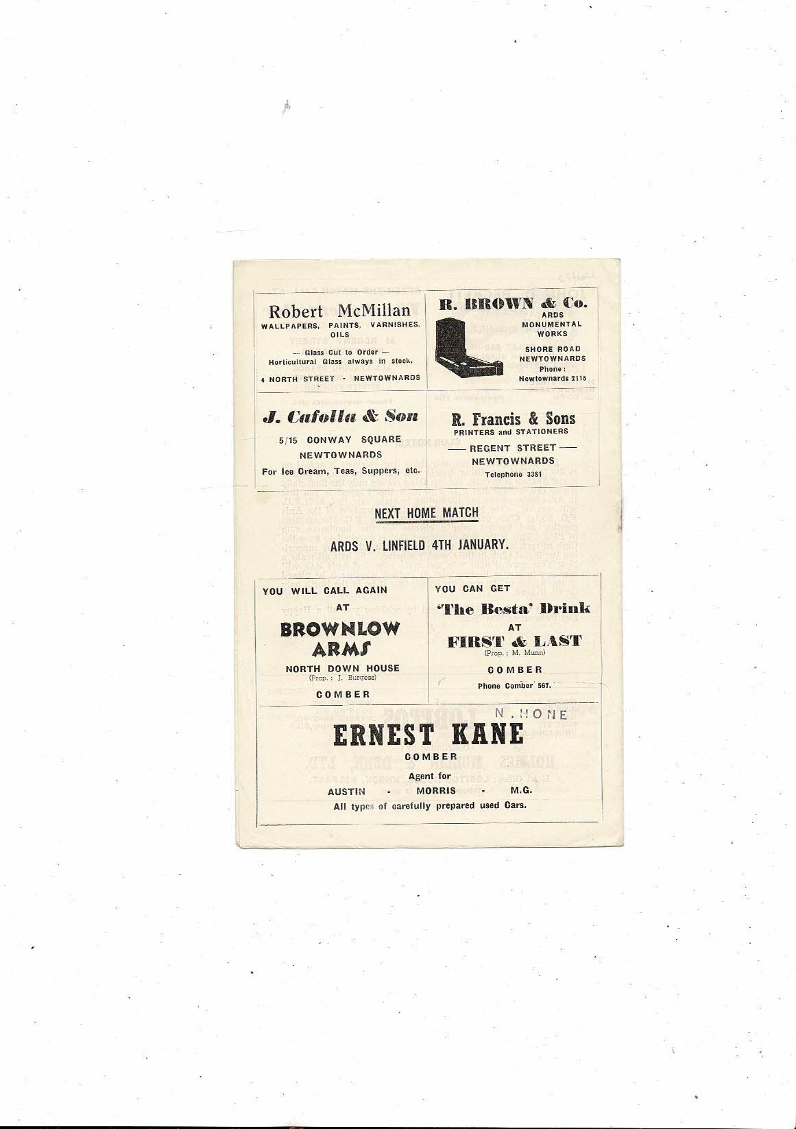 1963/64 Ards v Coleraine Football Programme