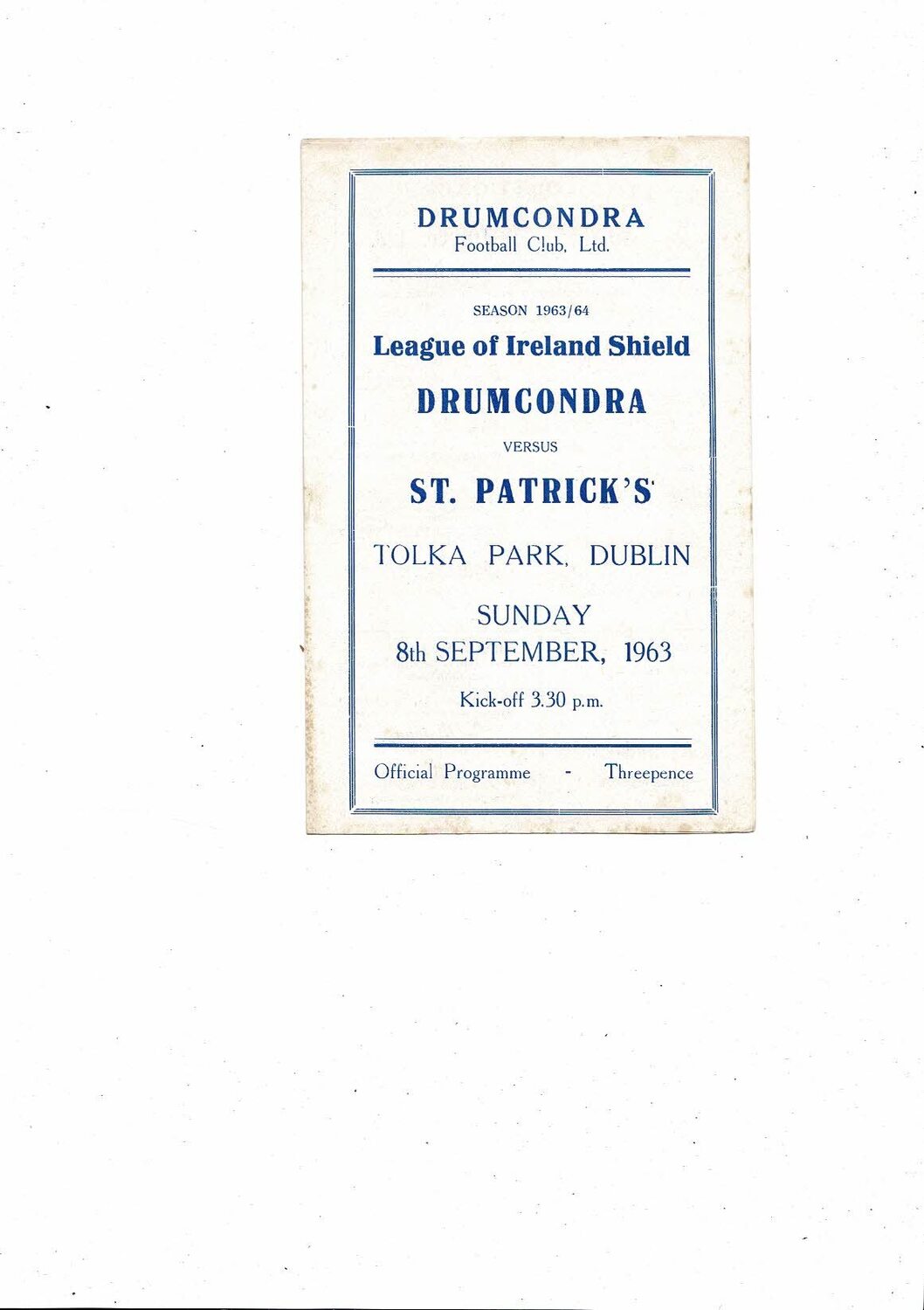 1963/64 Drumcondra v St Patrick's League of Ireland Shield Football Programme