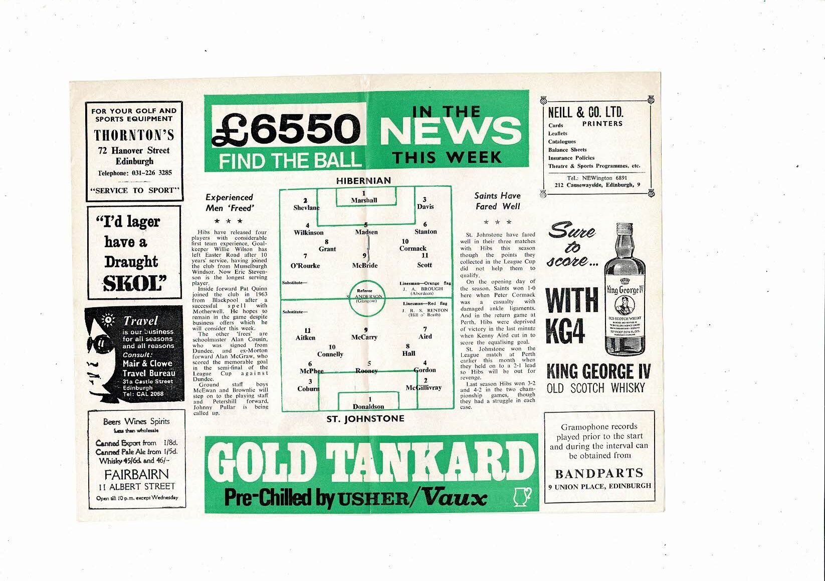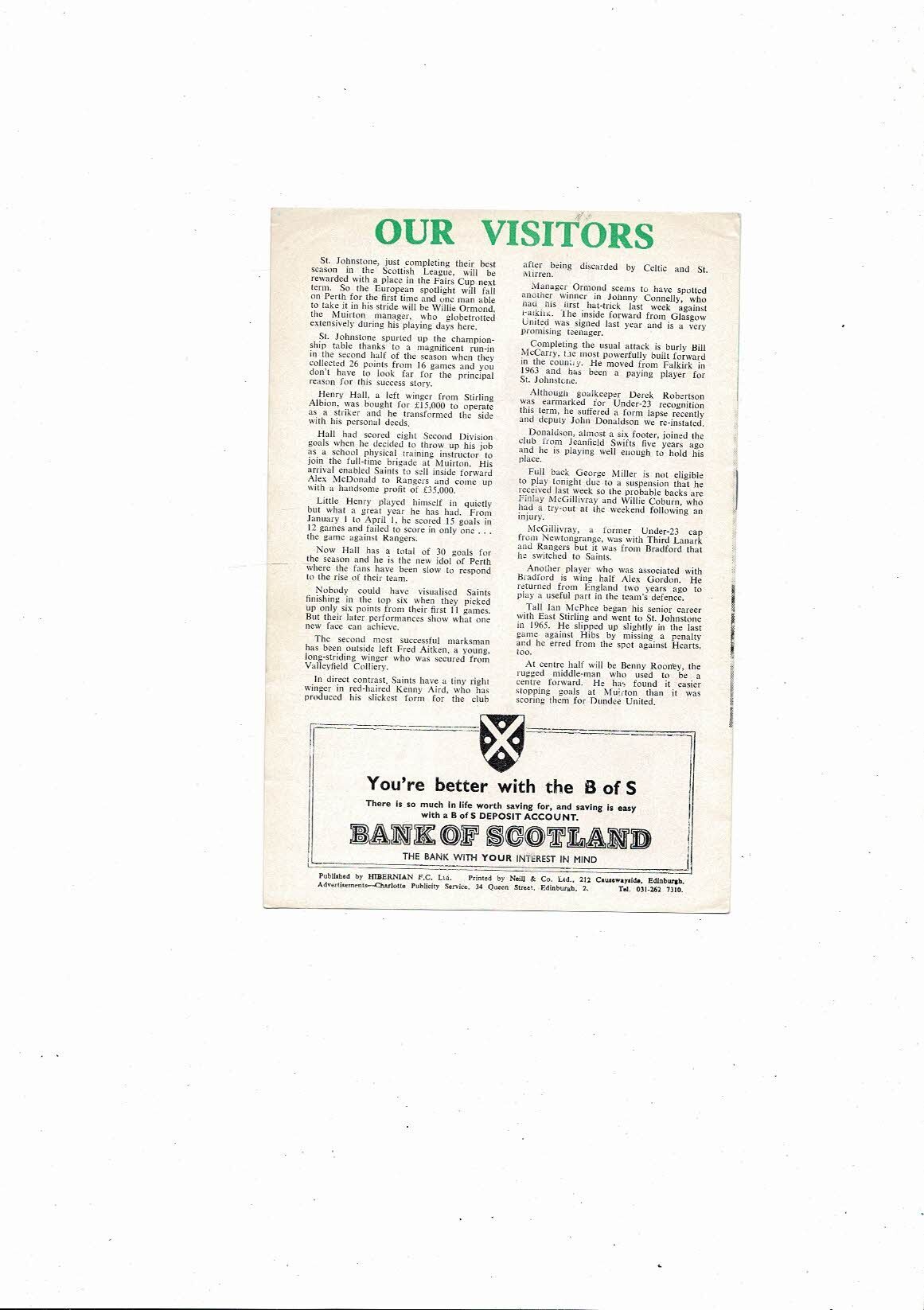 1968/69 Hibernian v St Johnstone Football Programme