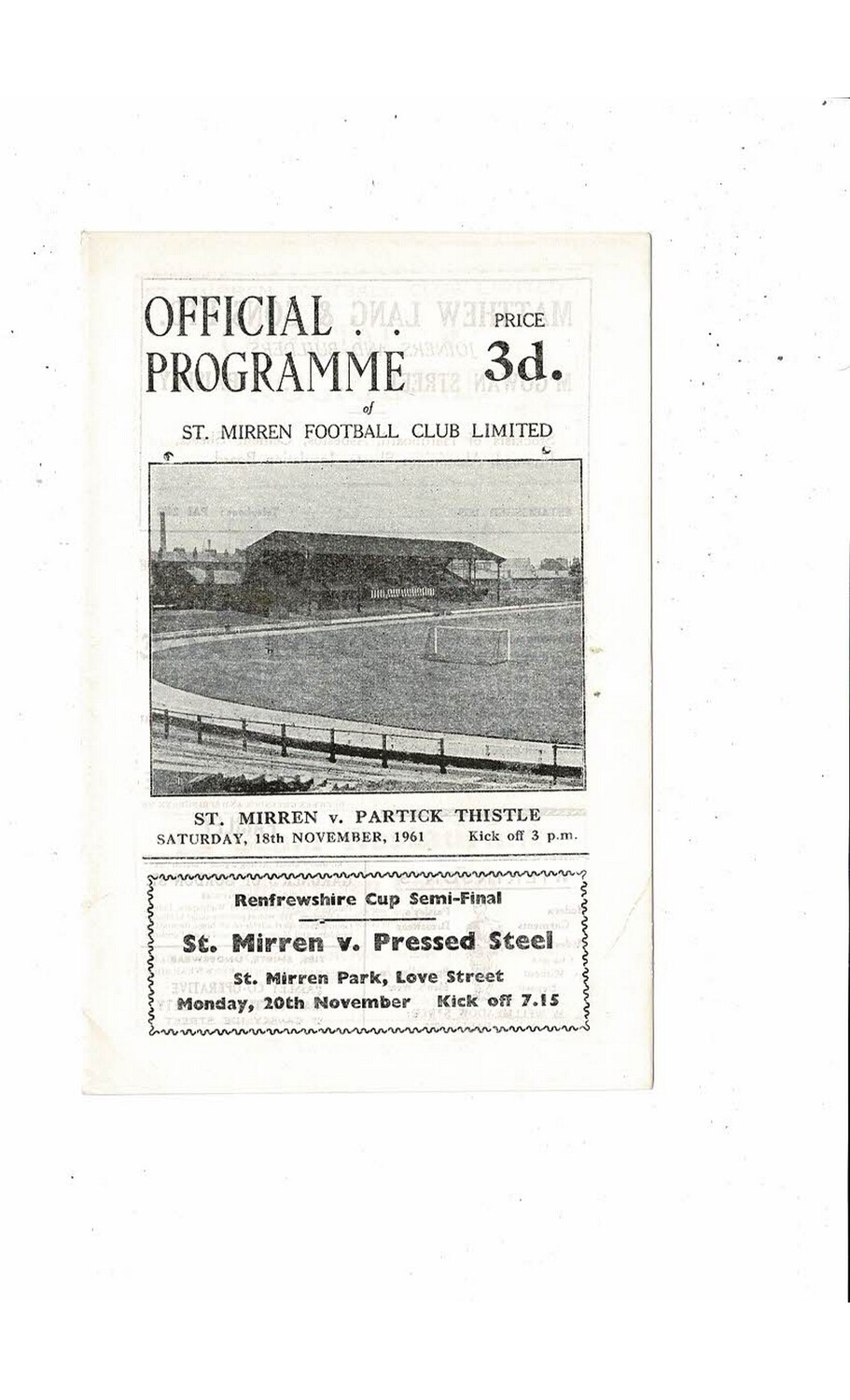 1961/62 St Mirren v Partick Thistle Football Programme