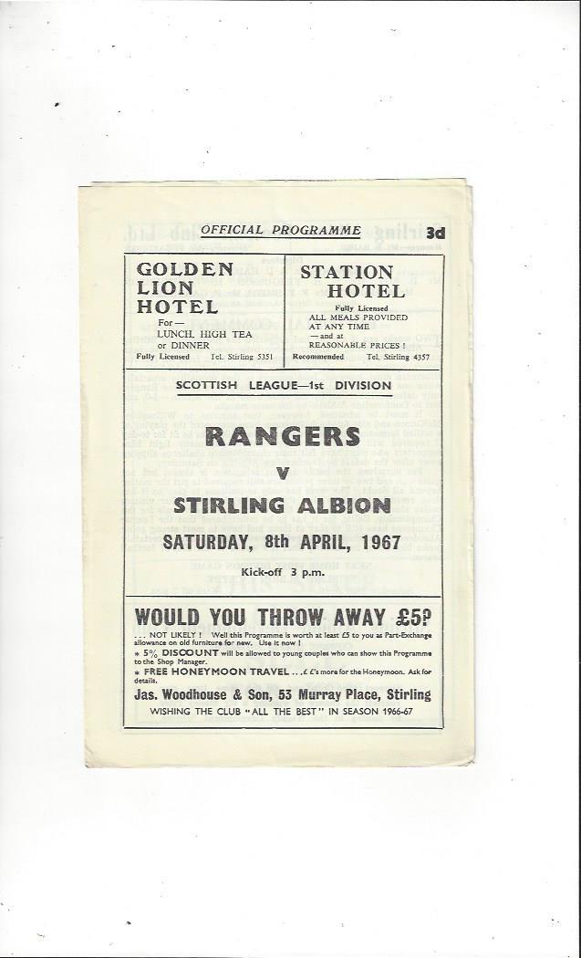 1966/67 Stirling Albion v Rangers Football Programme