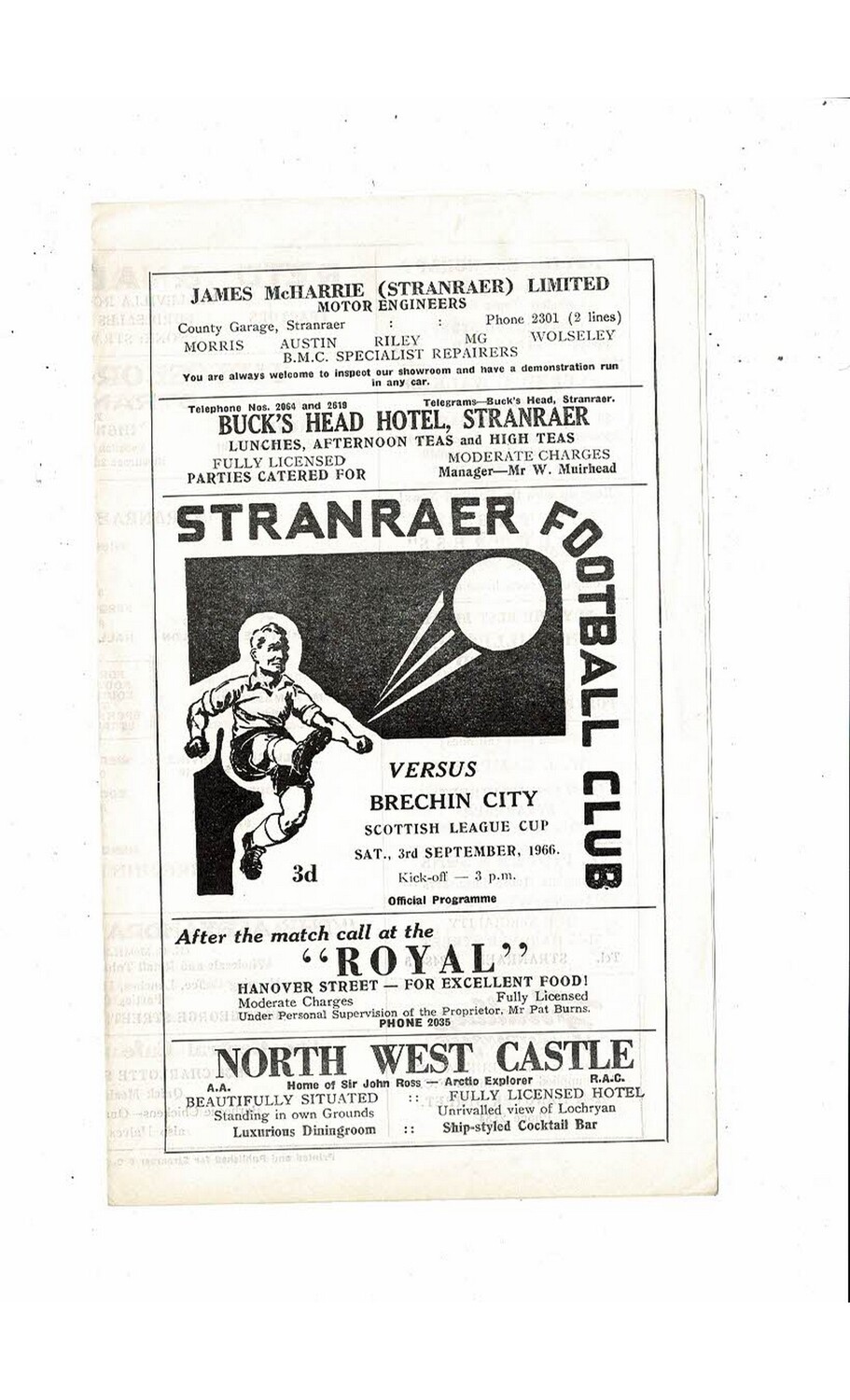 1966/67 Stranraer v Brechin City League Cup Football Programme