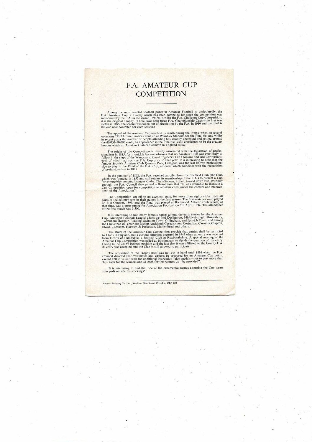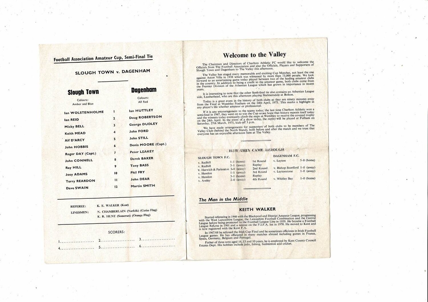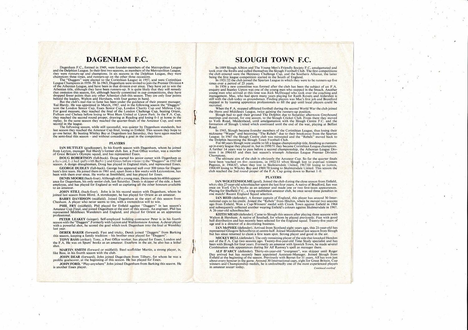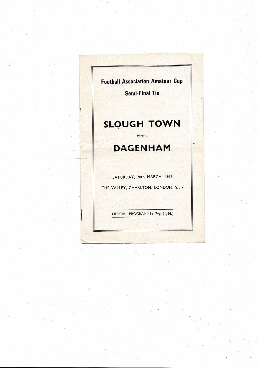 1970/71 Slough Town v Dagenham FA Amateur Cup Semi Final Programme @ Charlton