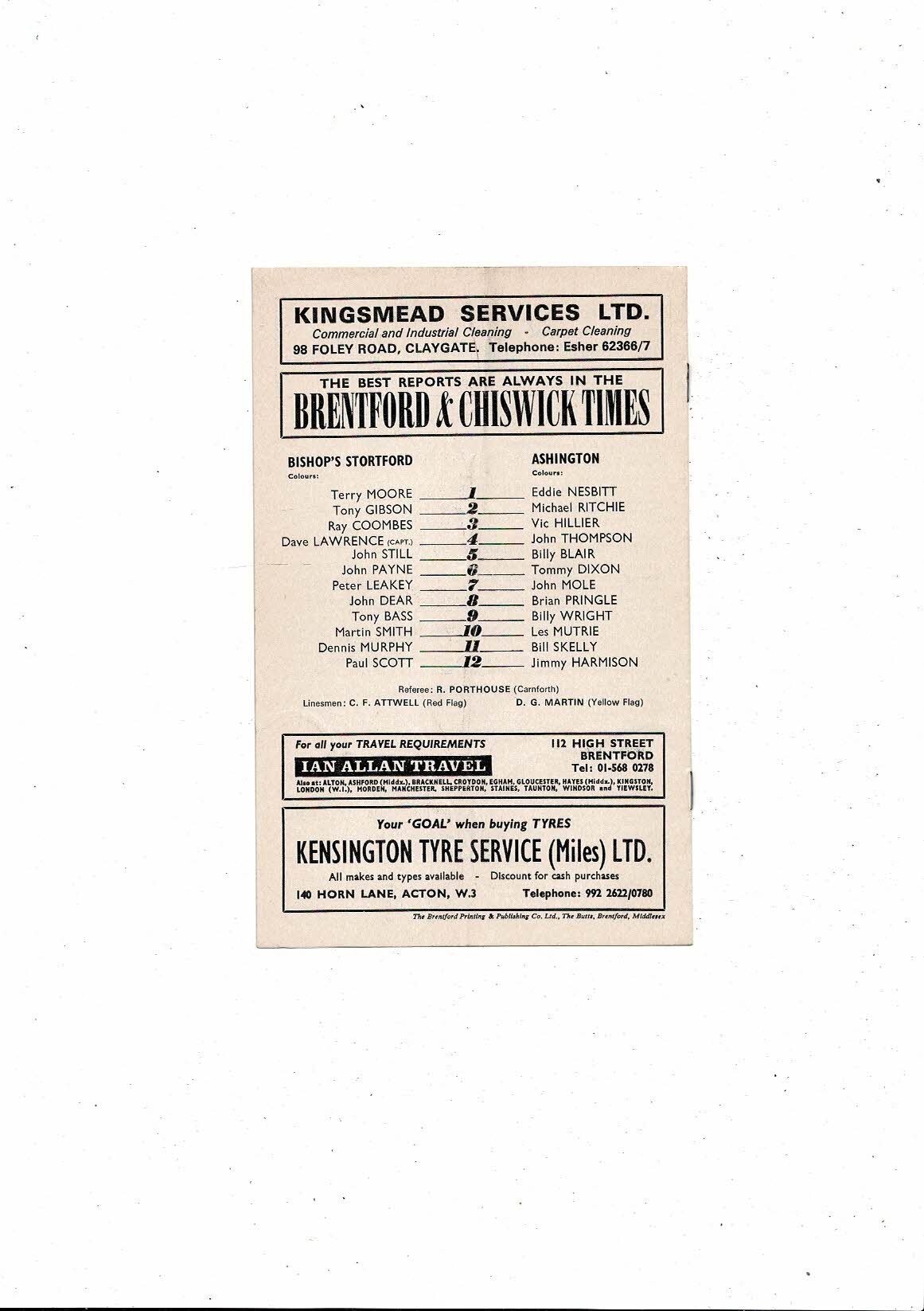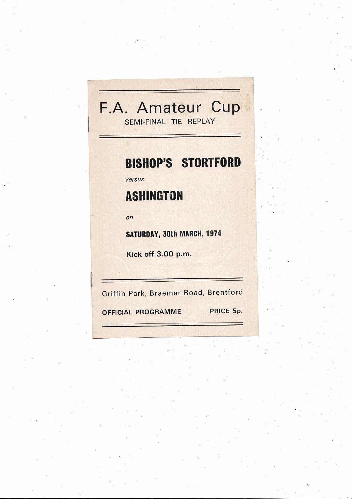 1973/74 Bishop's Stortford v Ashington FA Amateur Cup Semi Final Rep @ Brentford