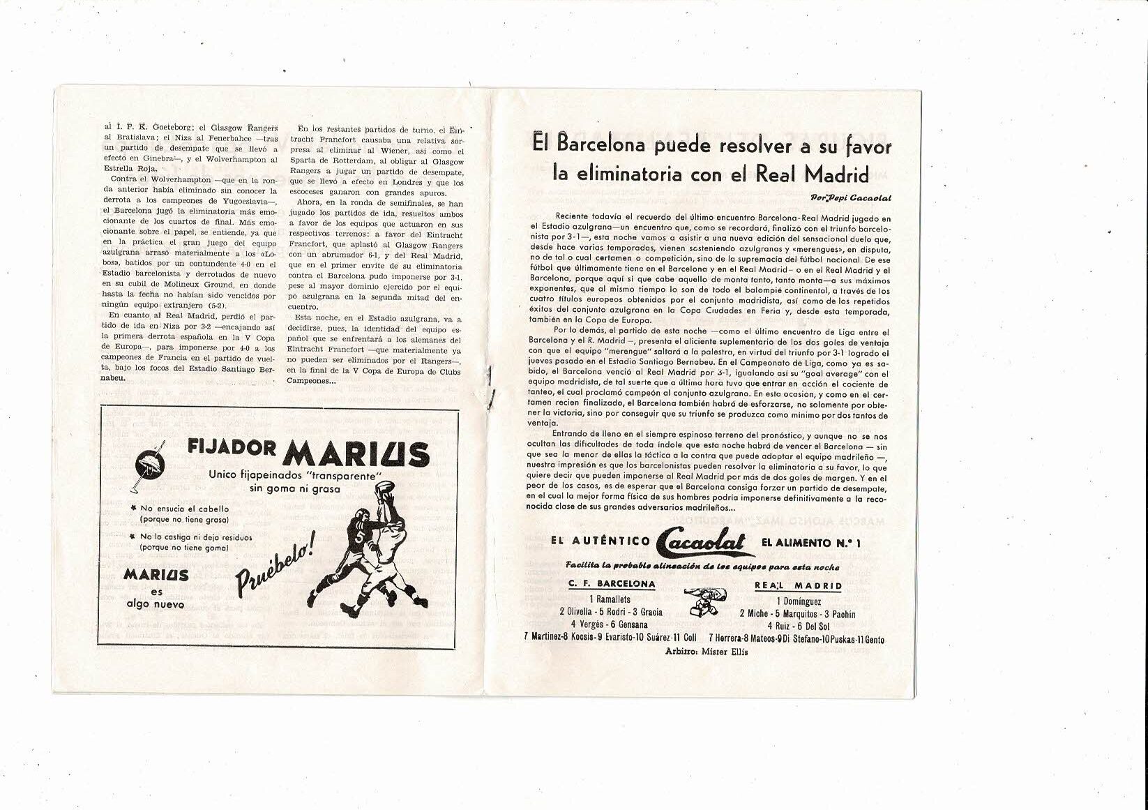 1959/60 Barcelona v Real Madrid European Cup Semi Final Football Programme