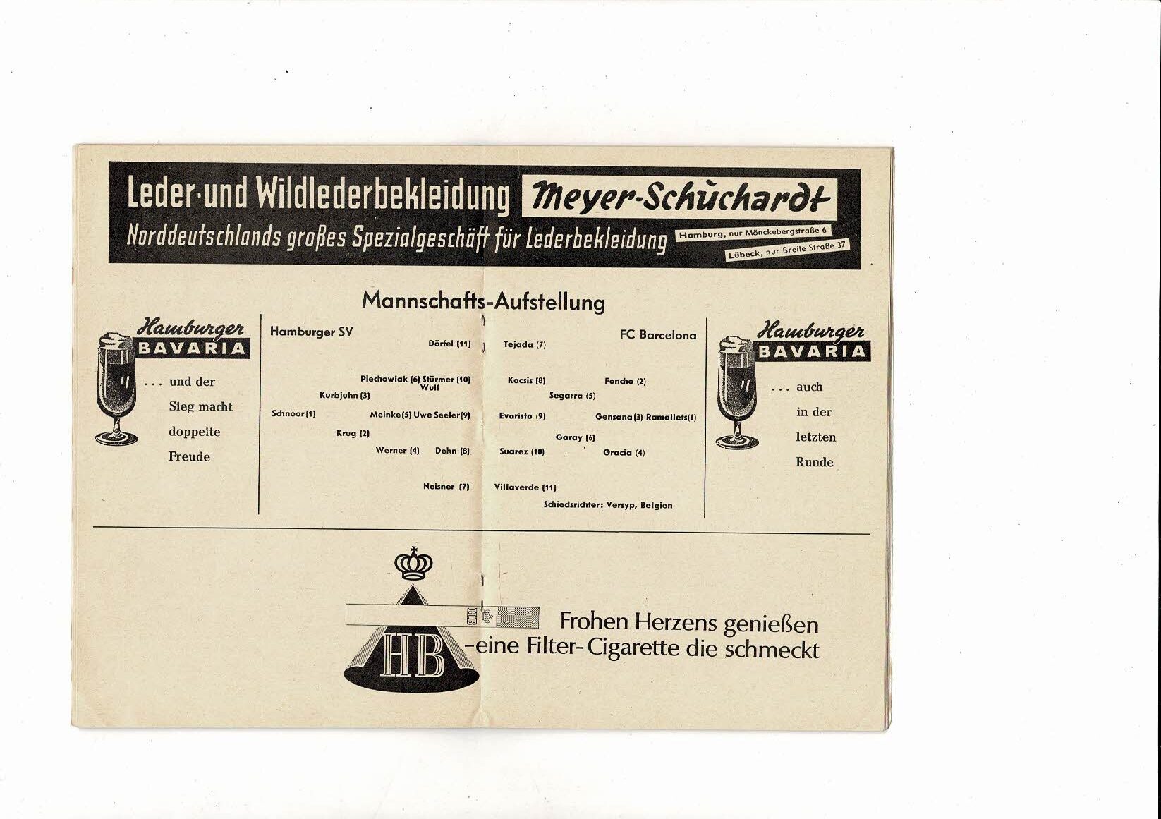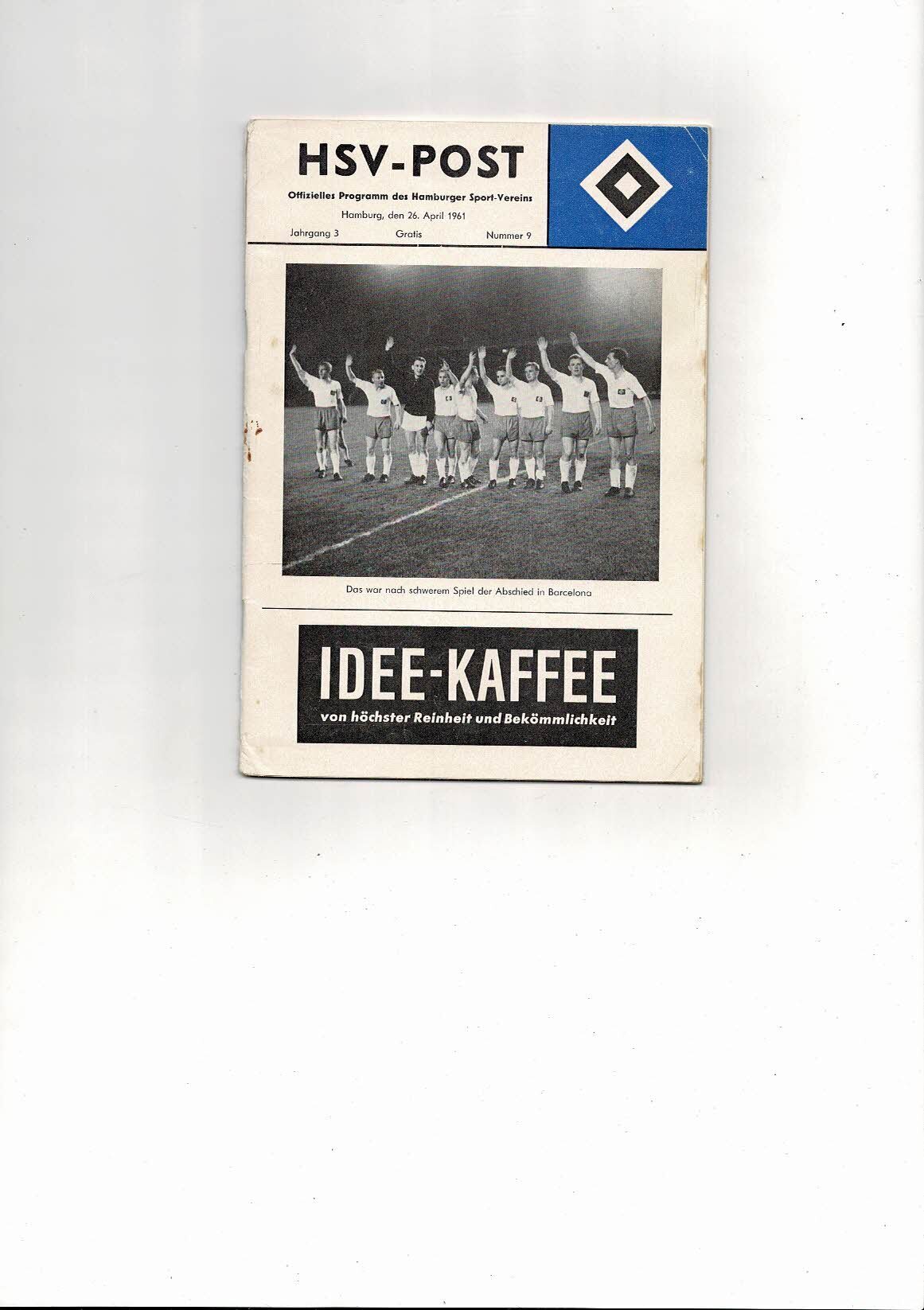 1960/61 Hamburg v Barcelona European Cup Semi Final Football Programme
