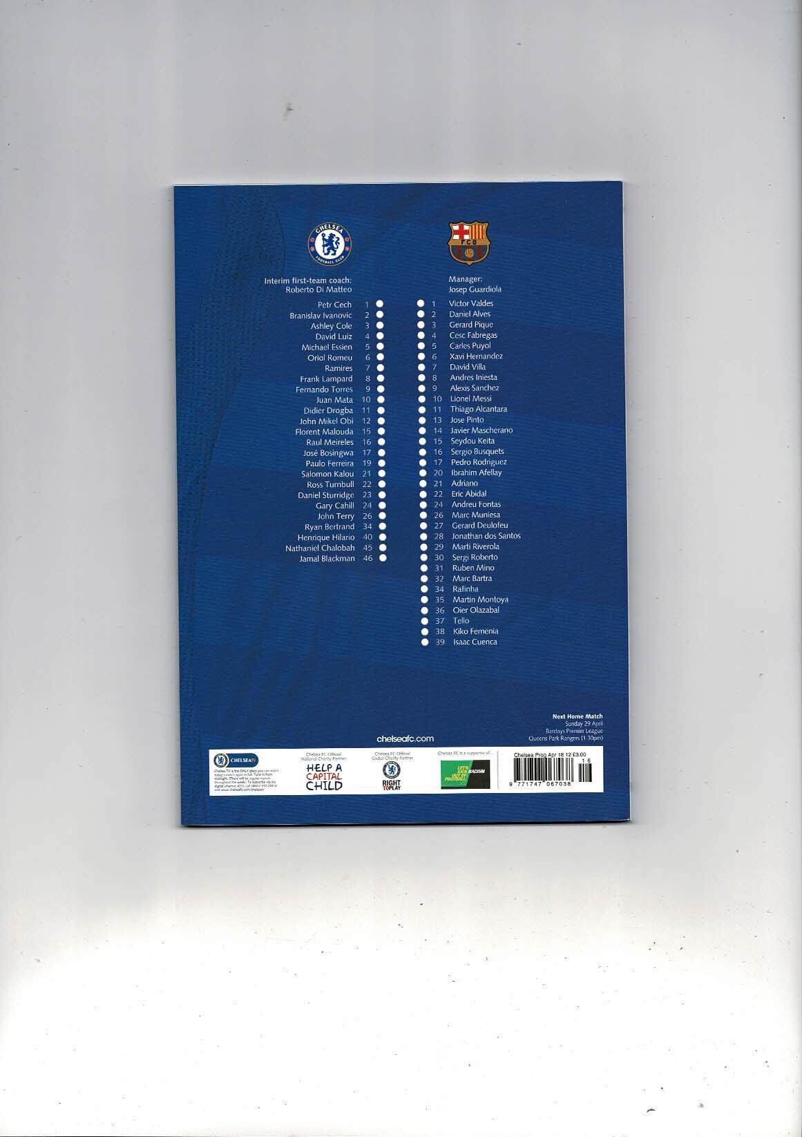 2011/12 Chelsea v Barcelona Champions League Semi Final Football Programme