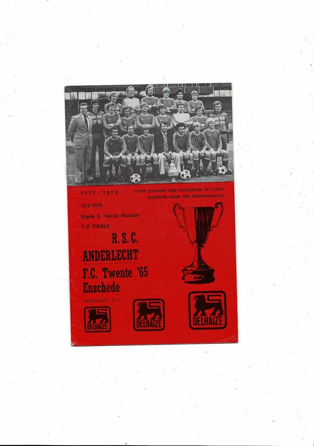 1977/78 Anderlecht v Twente European Cup Winners Cup Semi Final Football Programme