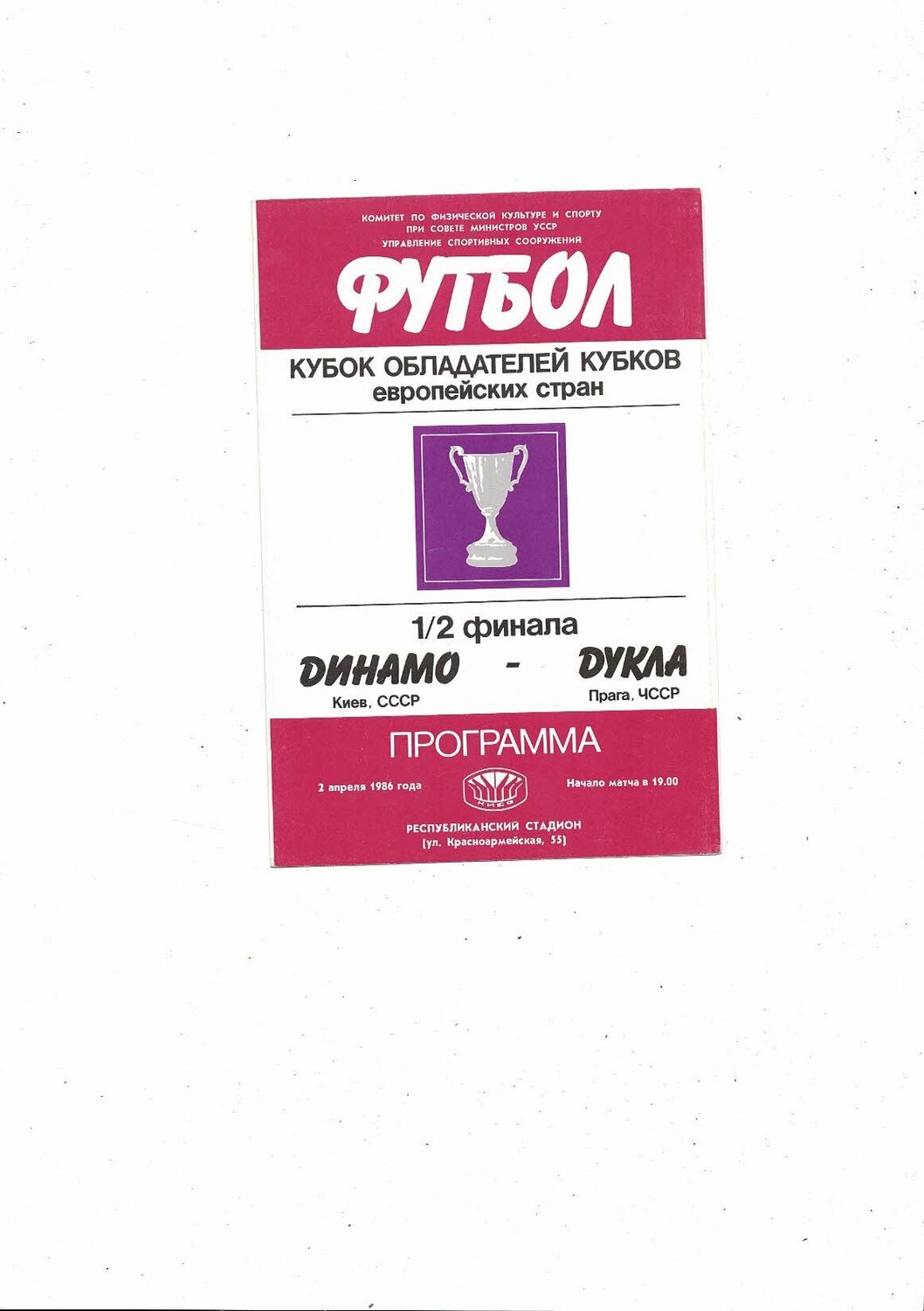 1985/86 Dynamo Keiv v Dukla Prague European Cup Winners Cup Semi Final