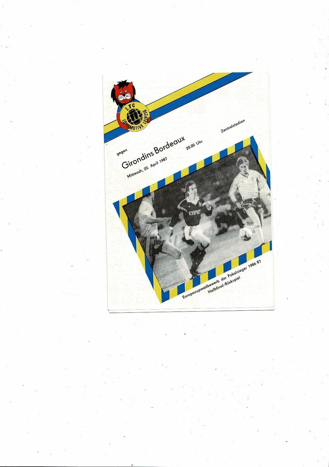 1986/87 Bordeaux v Leipzig European Cup Winners Cup Semi Final Football Programme