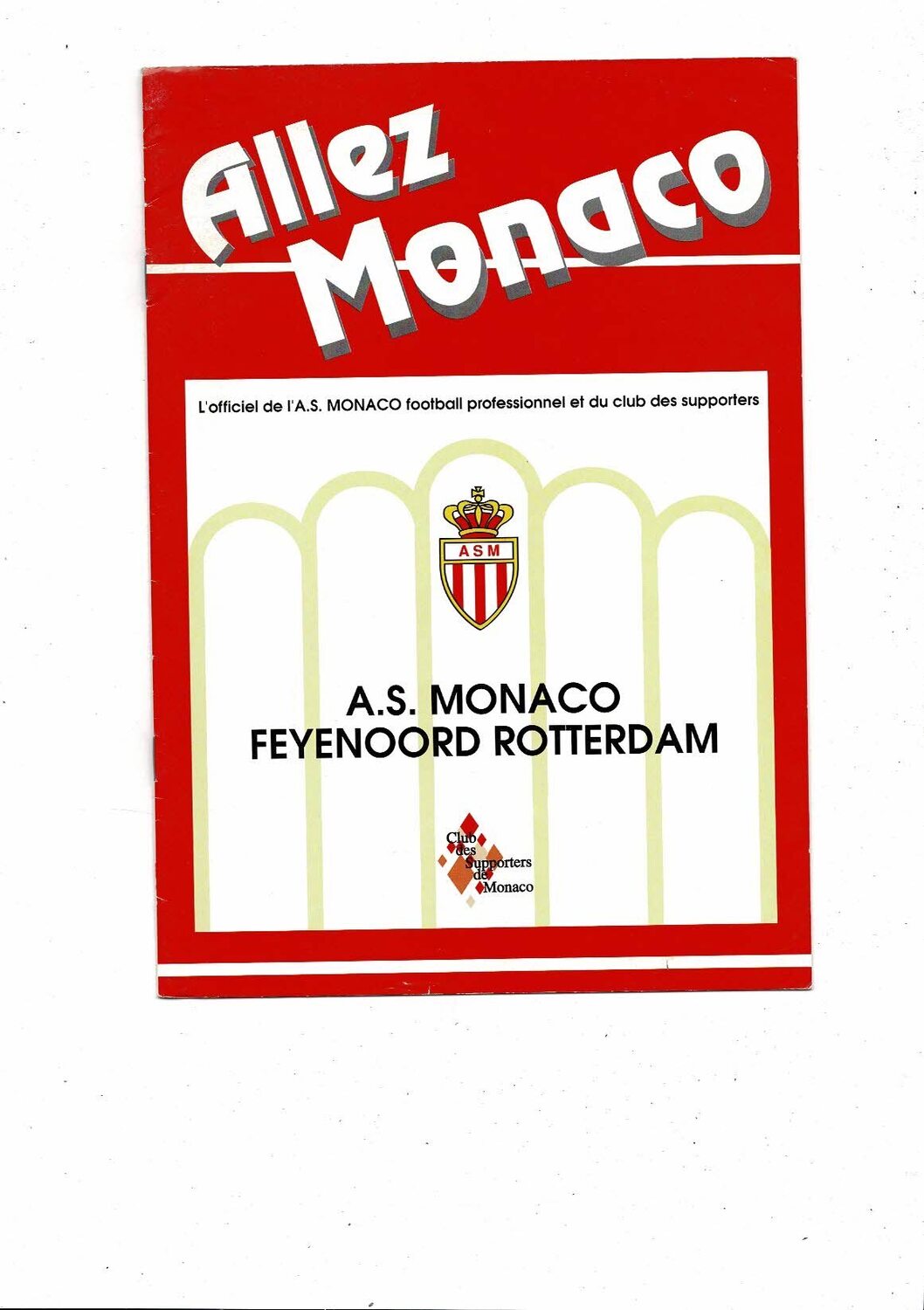 1991/92 Monaco v Feyenoord Europen Cup Winners Cup Semi Final Football Programme