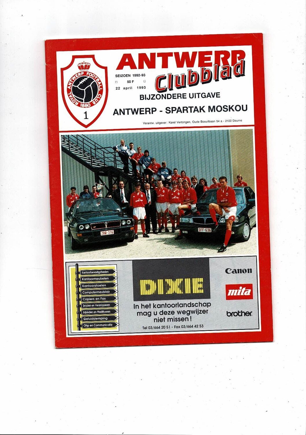 1992/93 Antwerp v Spartak Moscow European Cup Winners Cup Semi Final Football Programme