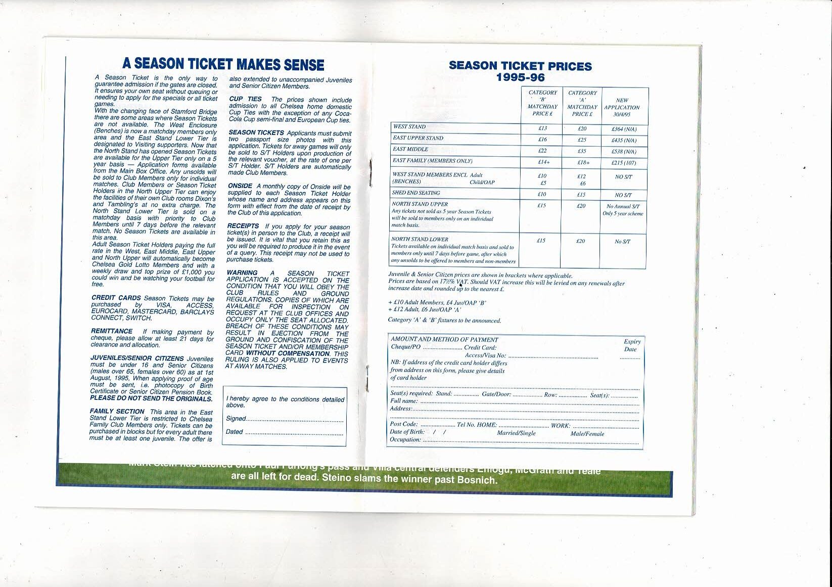 1994/95 Chelsea v Real Zaragoza European Cup Winners Cup Semi Final Programme