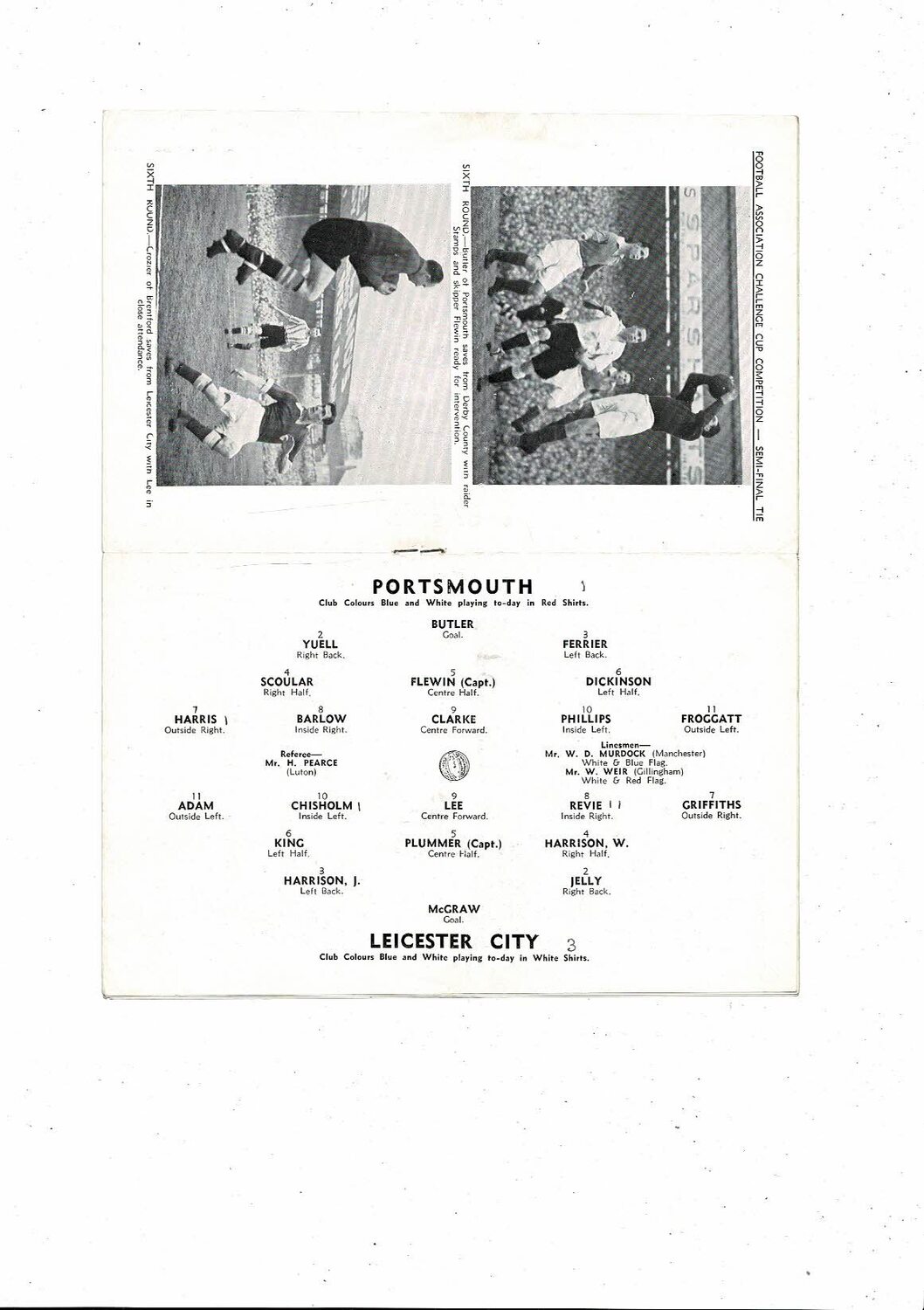 1949 Portsmouth v Leicester City FA Cup Semi Final Football Programme @ Arsenal