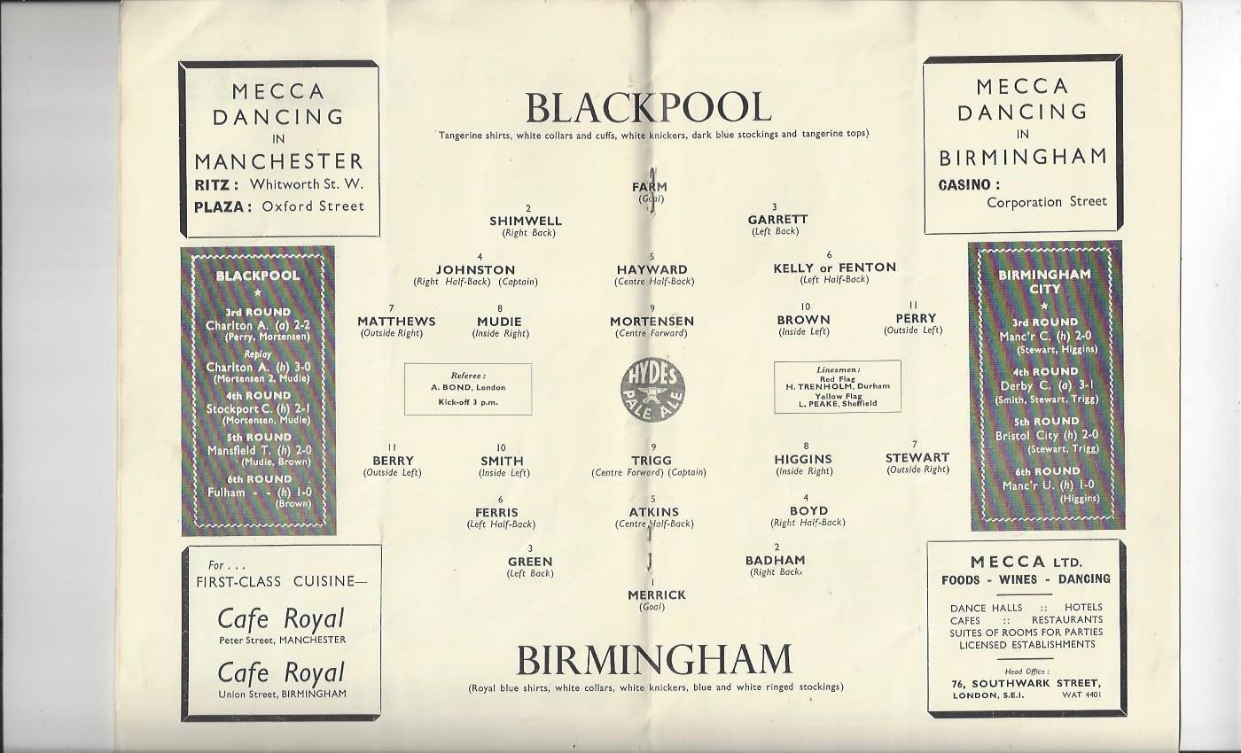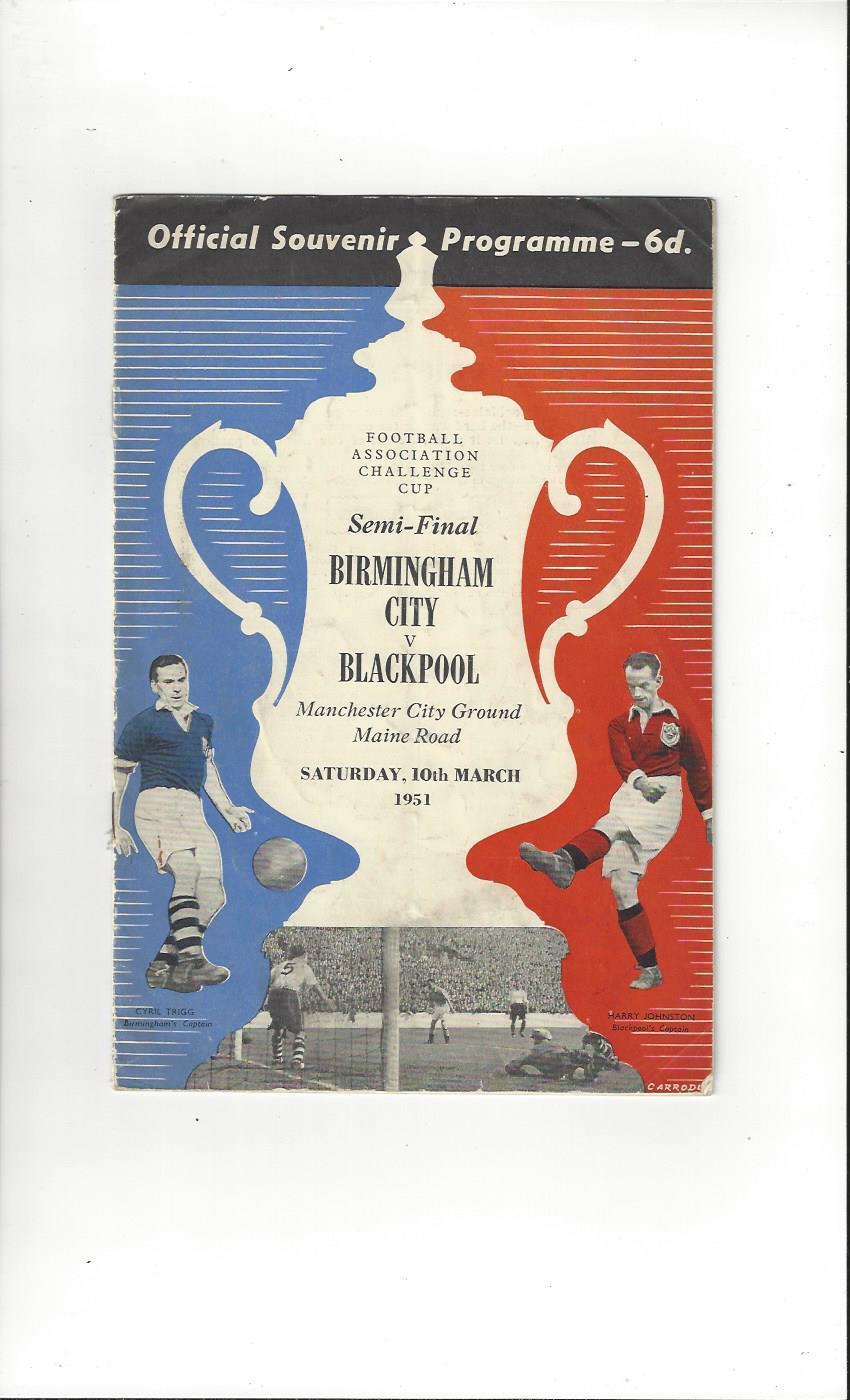 1951 Birmingham City v Blackpool FA Cup Semi Final Football Programme @ Manchester City