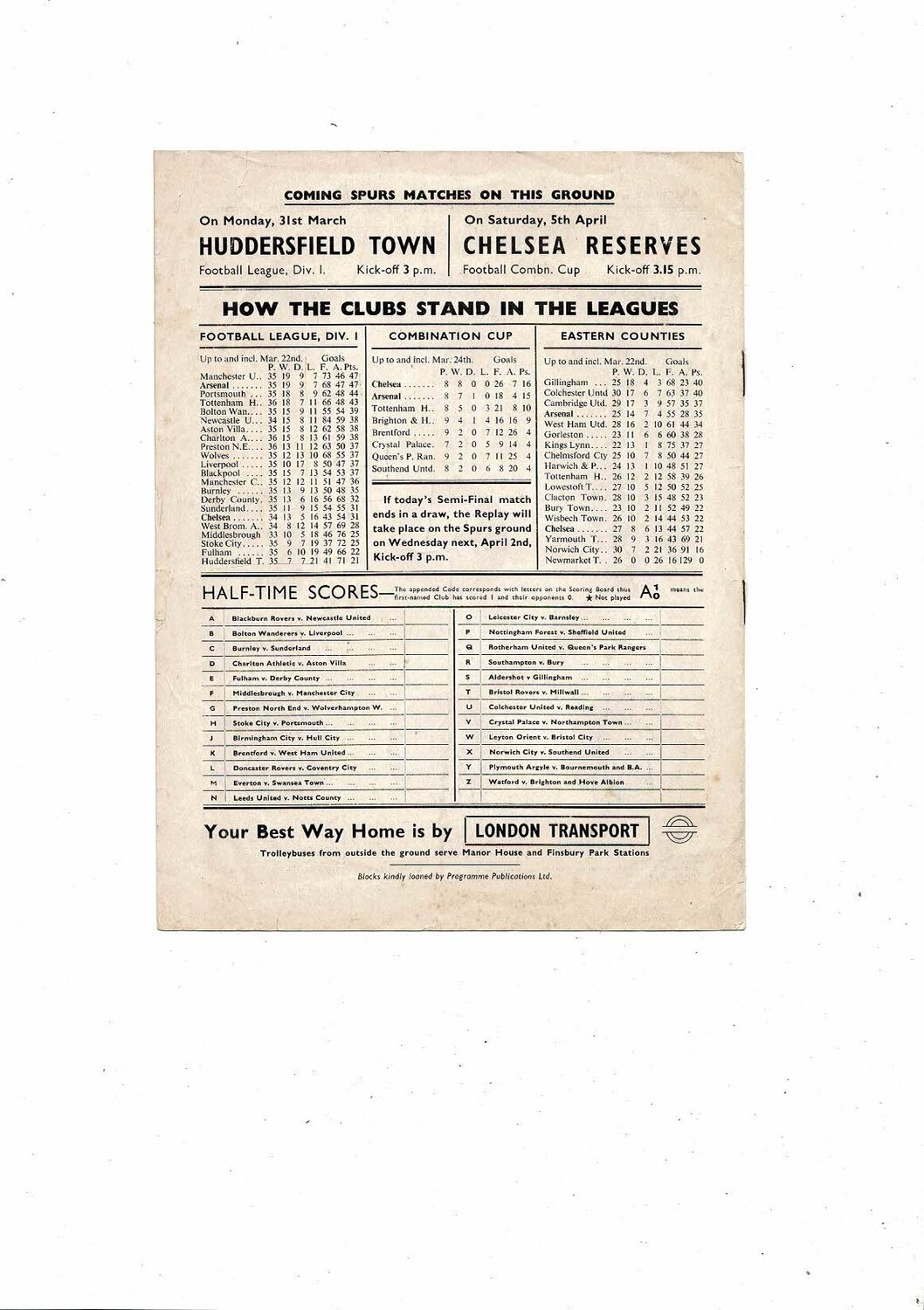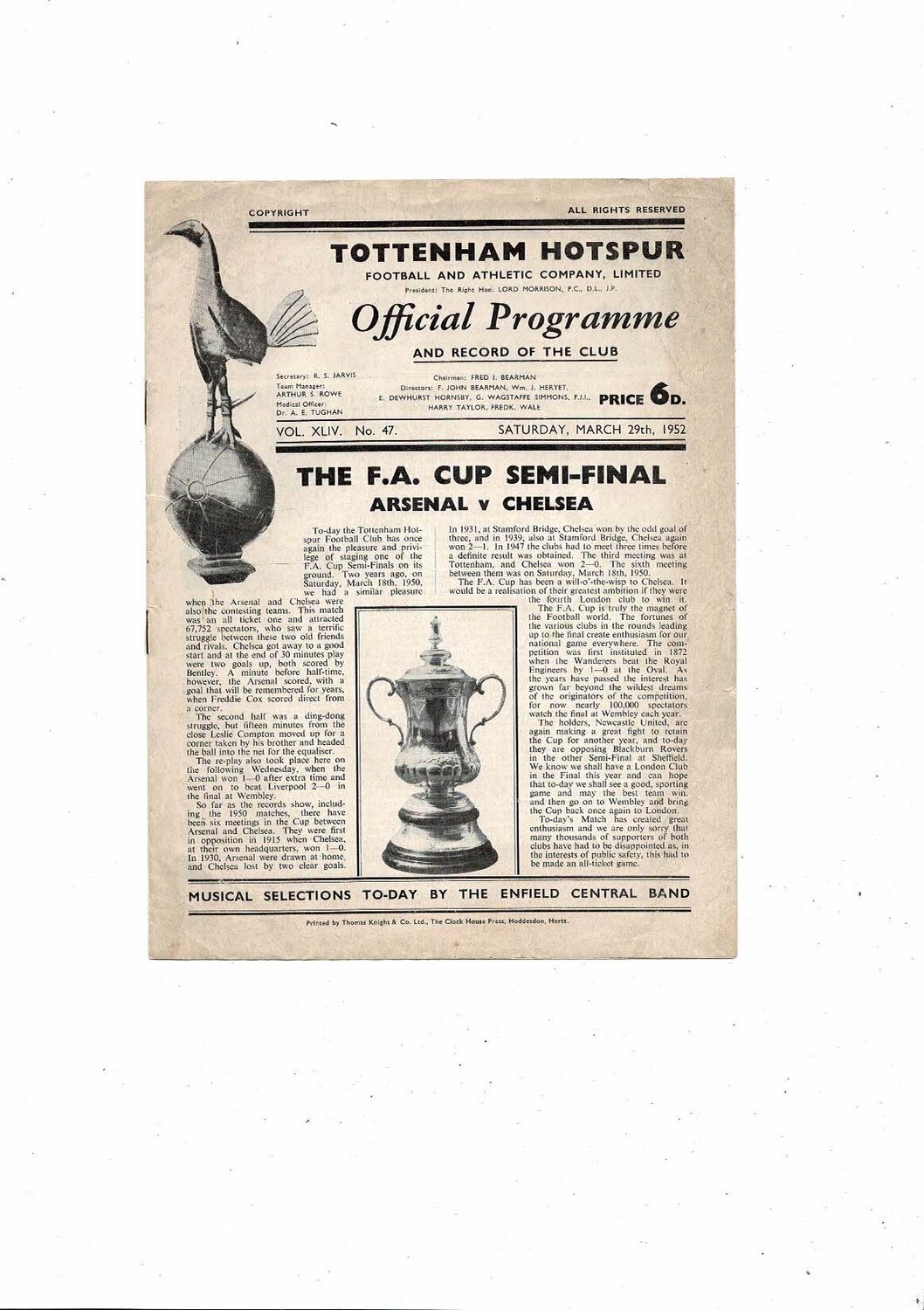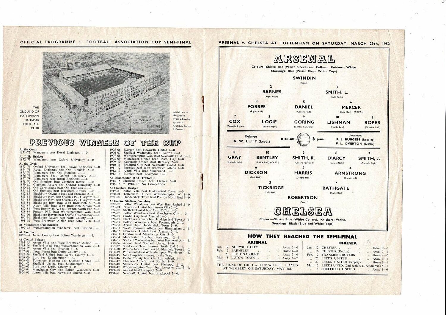 1952 Arsenal v Chelsea FA Cup Semi Final Football Programme