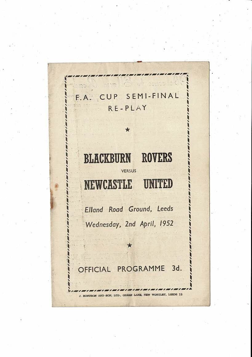 1952 Blackburn Rovers v Newcastle United FA Cup Semi Final Replay Programme @ Leeds