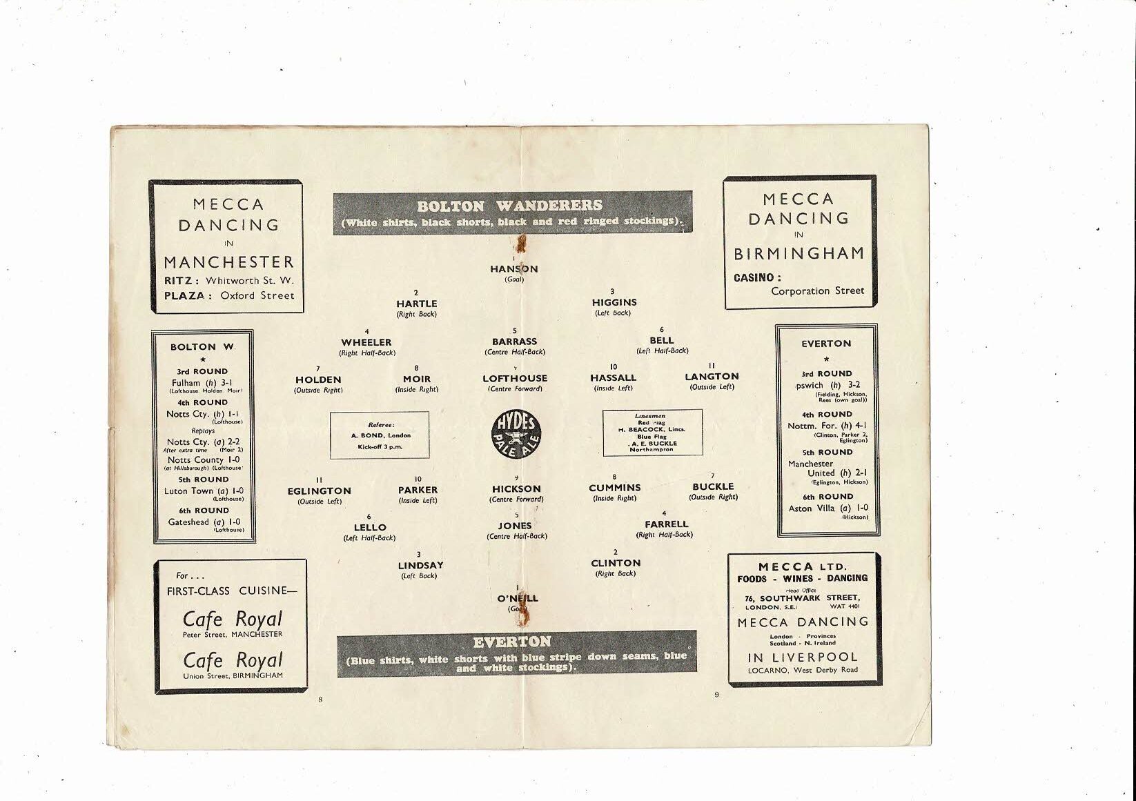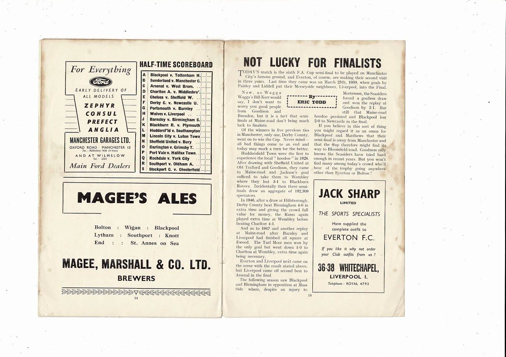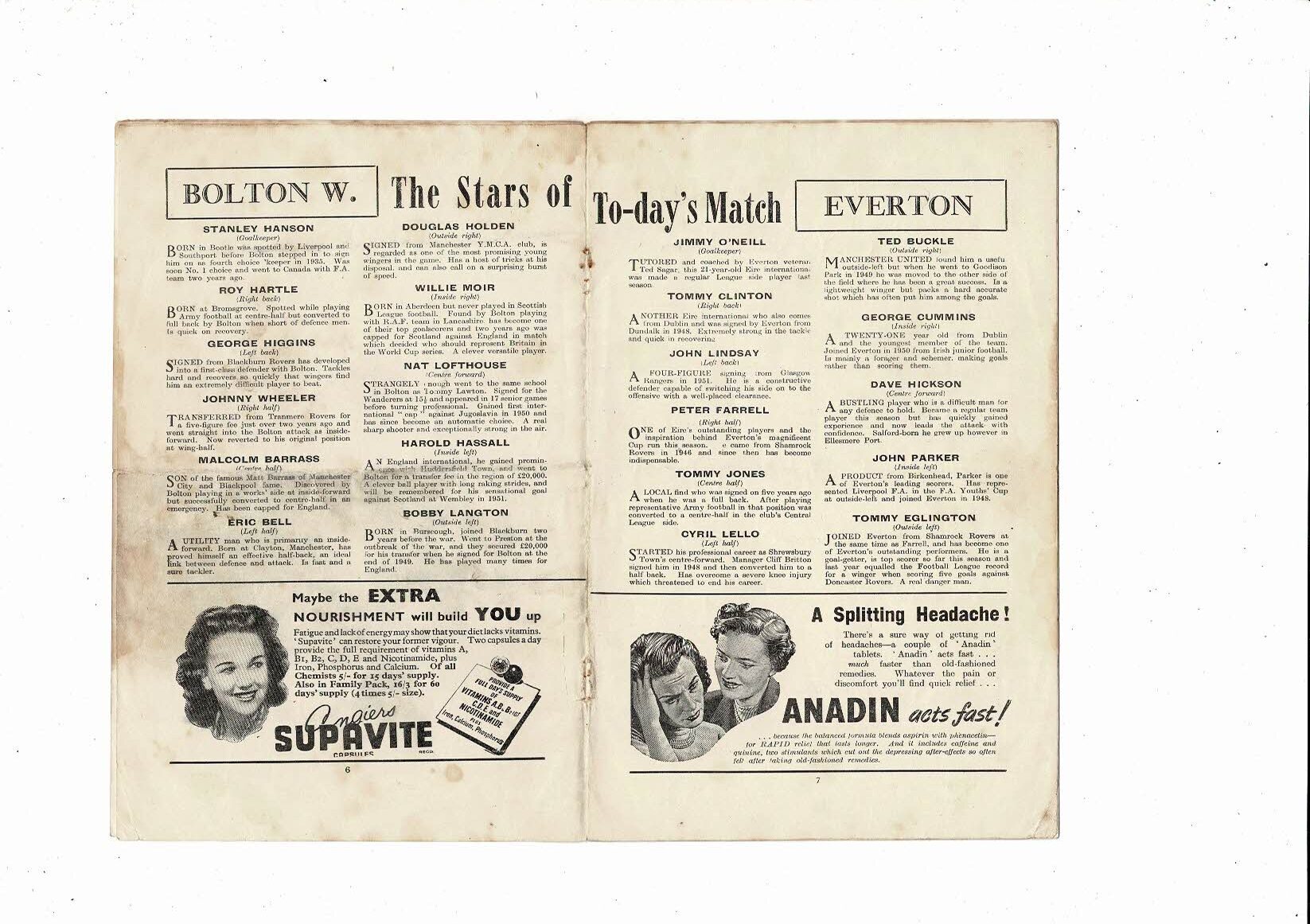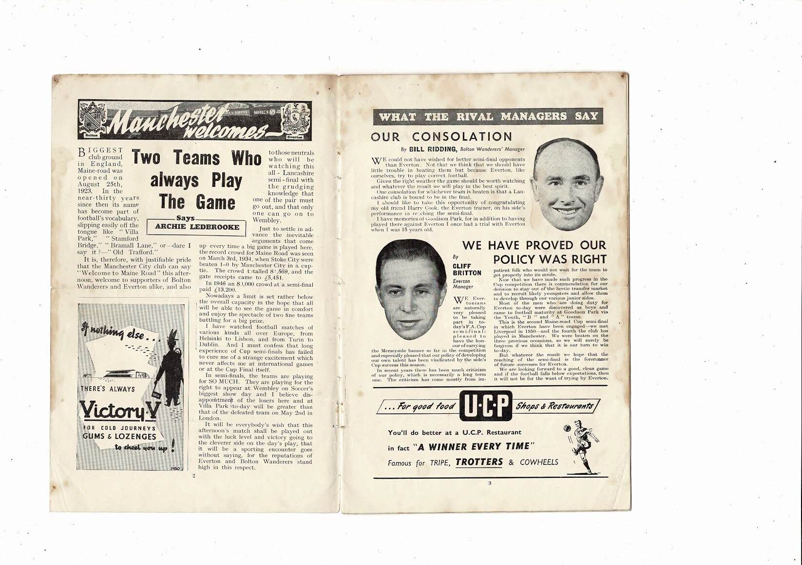 1953 Bolton Wanderers v Everton FA Cup Semi Final Football Programme @ Manchester City