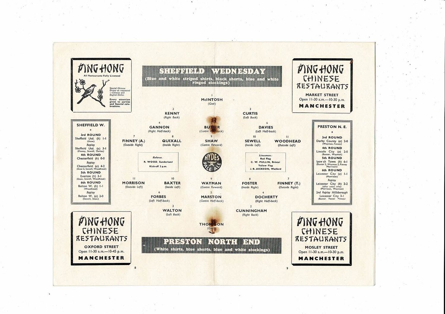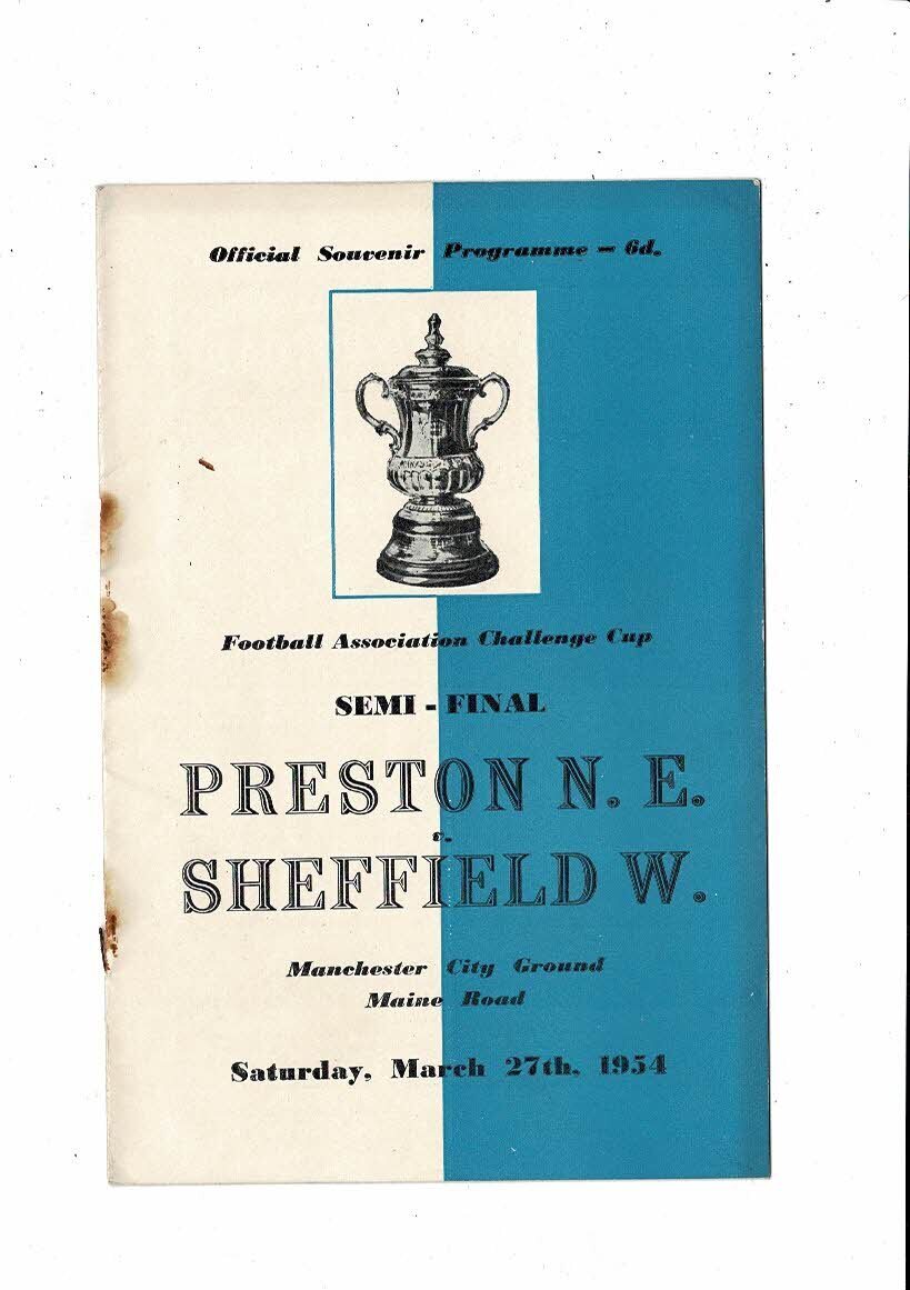 1954 Preston v Sheffield Wednesday FA Cup Semi Final Football Programme @ Man City