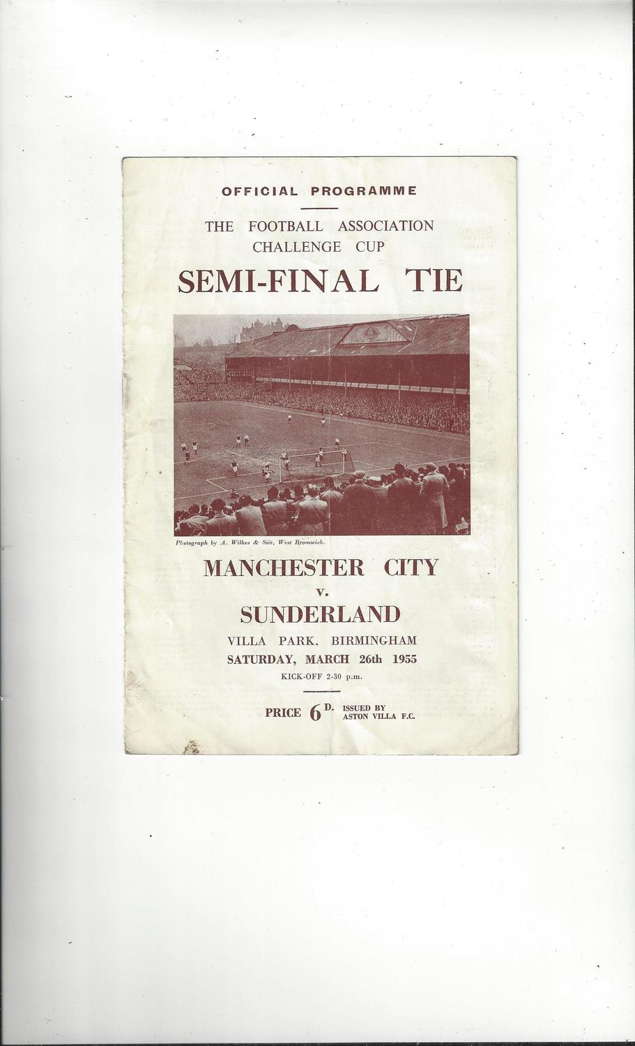 1955 Manchester City v Sunderland FA Cup Semi Final Programme