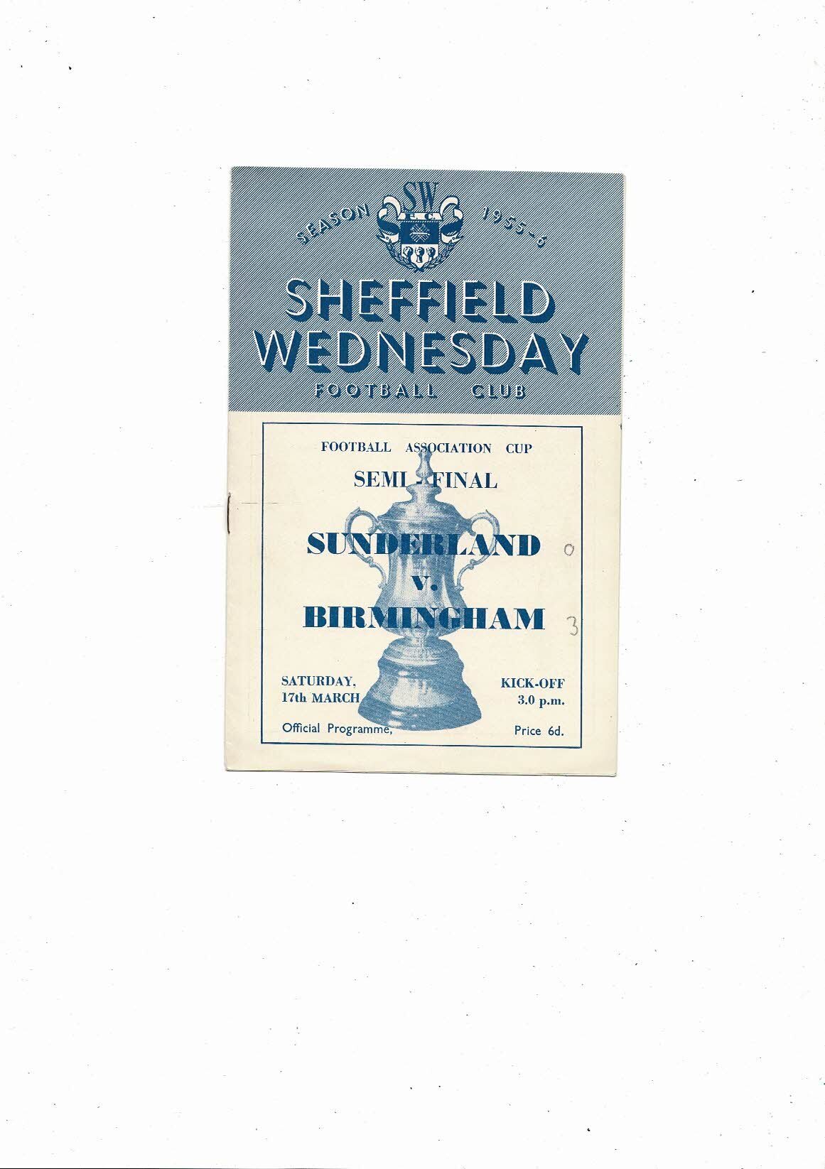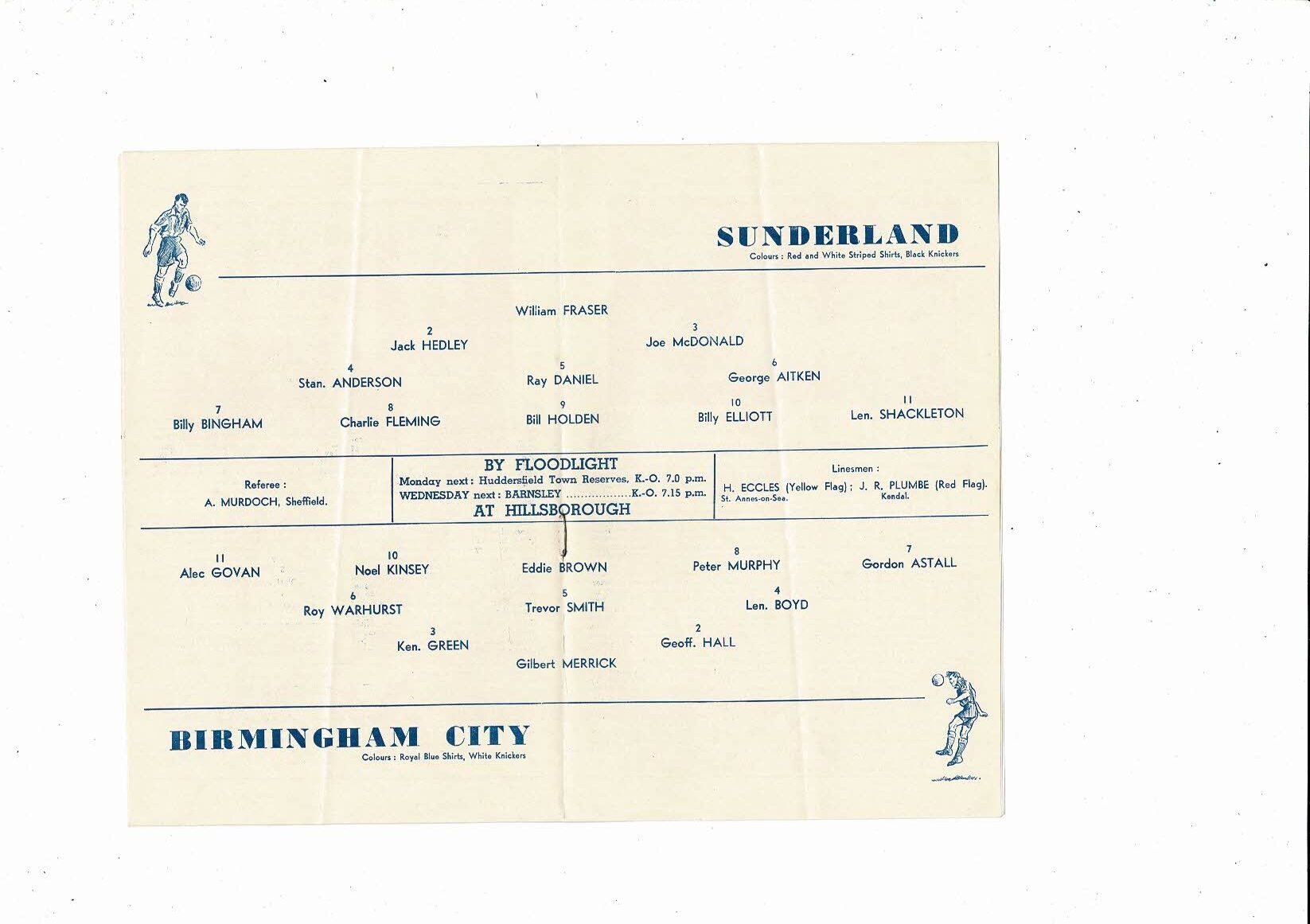 1956 Sunderland v Birmingham City FA Cup Semi Final Football Programme