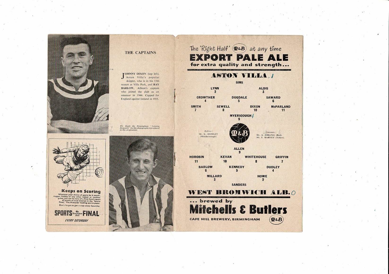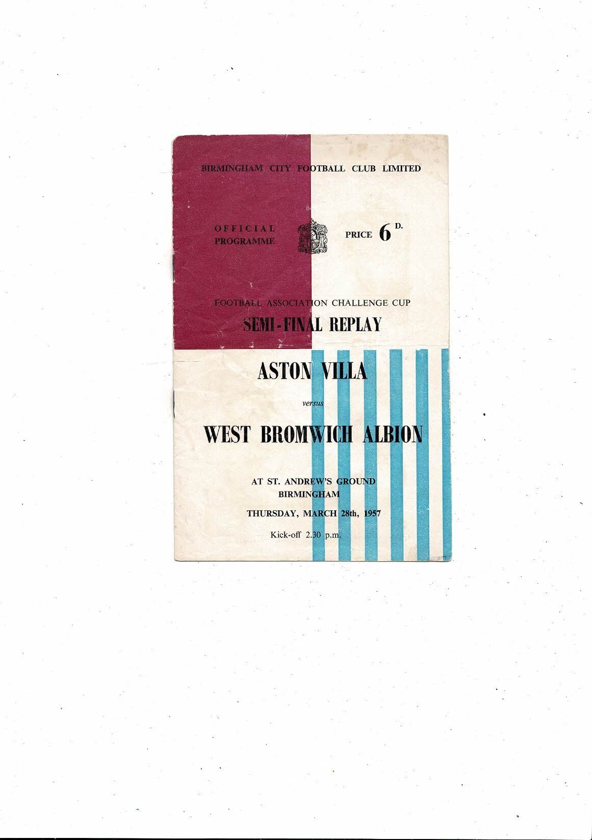 1957 Aston Villa v West Bromwich Albion FA Cup Semi Final Replay Programme @ Birmingham