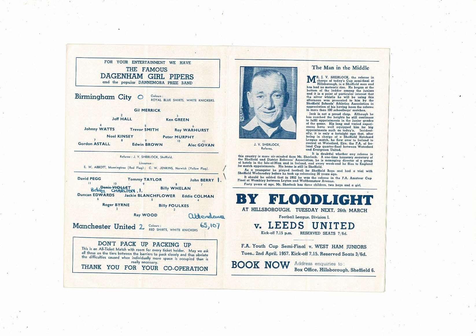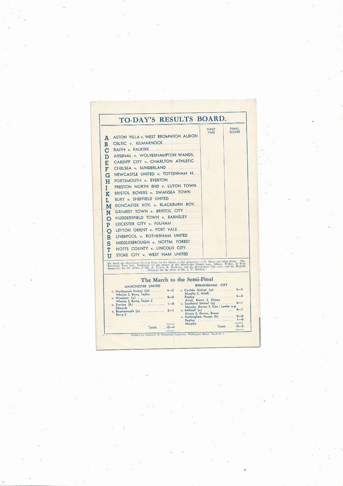 1957 Birmingham City v Manchester United FA Cup Semi Final Programme
