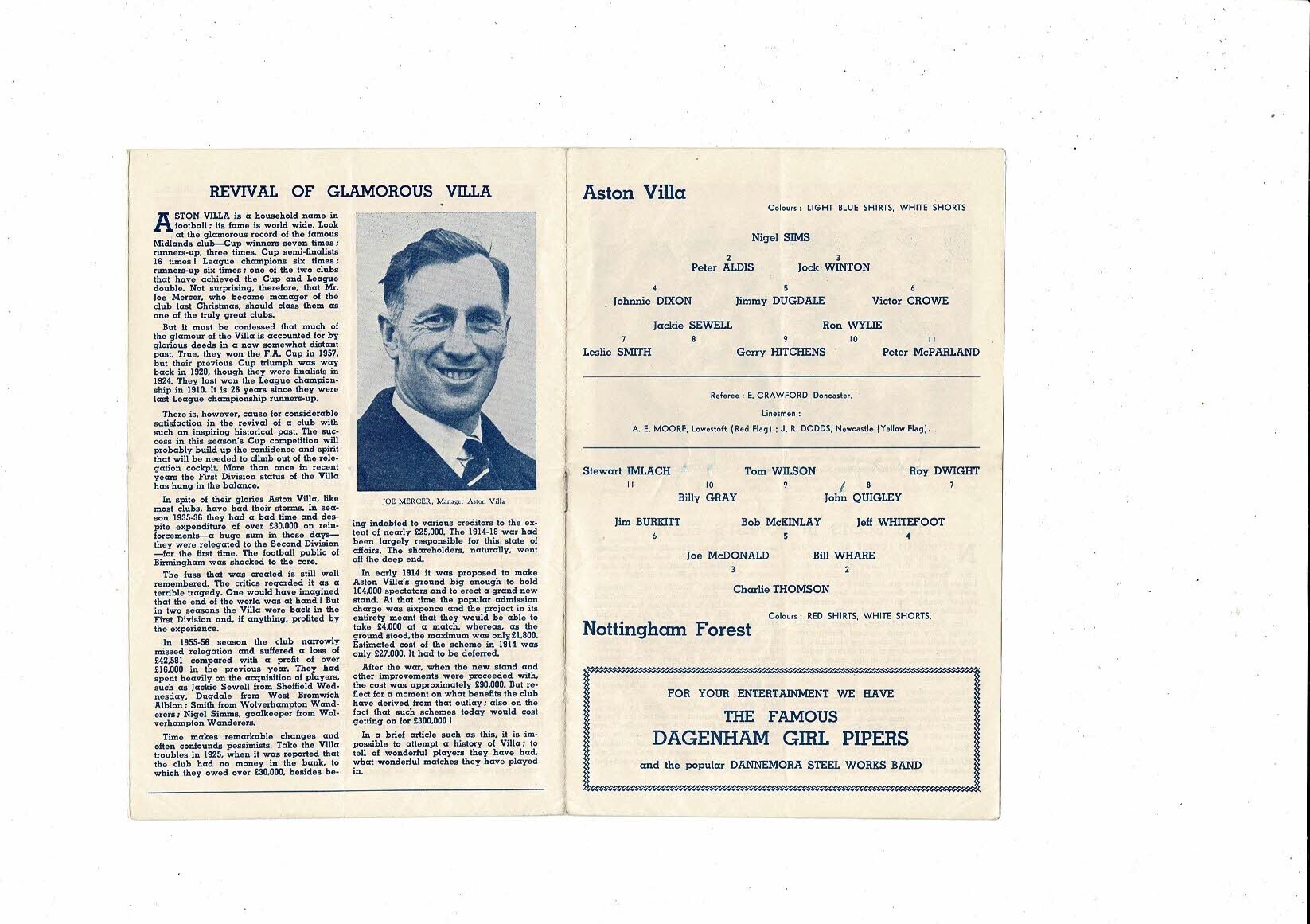 1959 Aston Villa v Nottingham Forest FA Cup Semi Final Football Programme @ Hillsborough