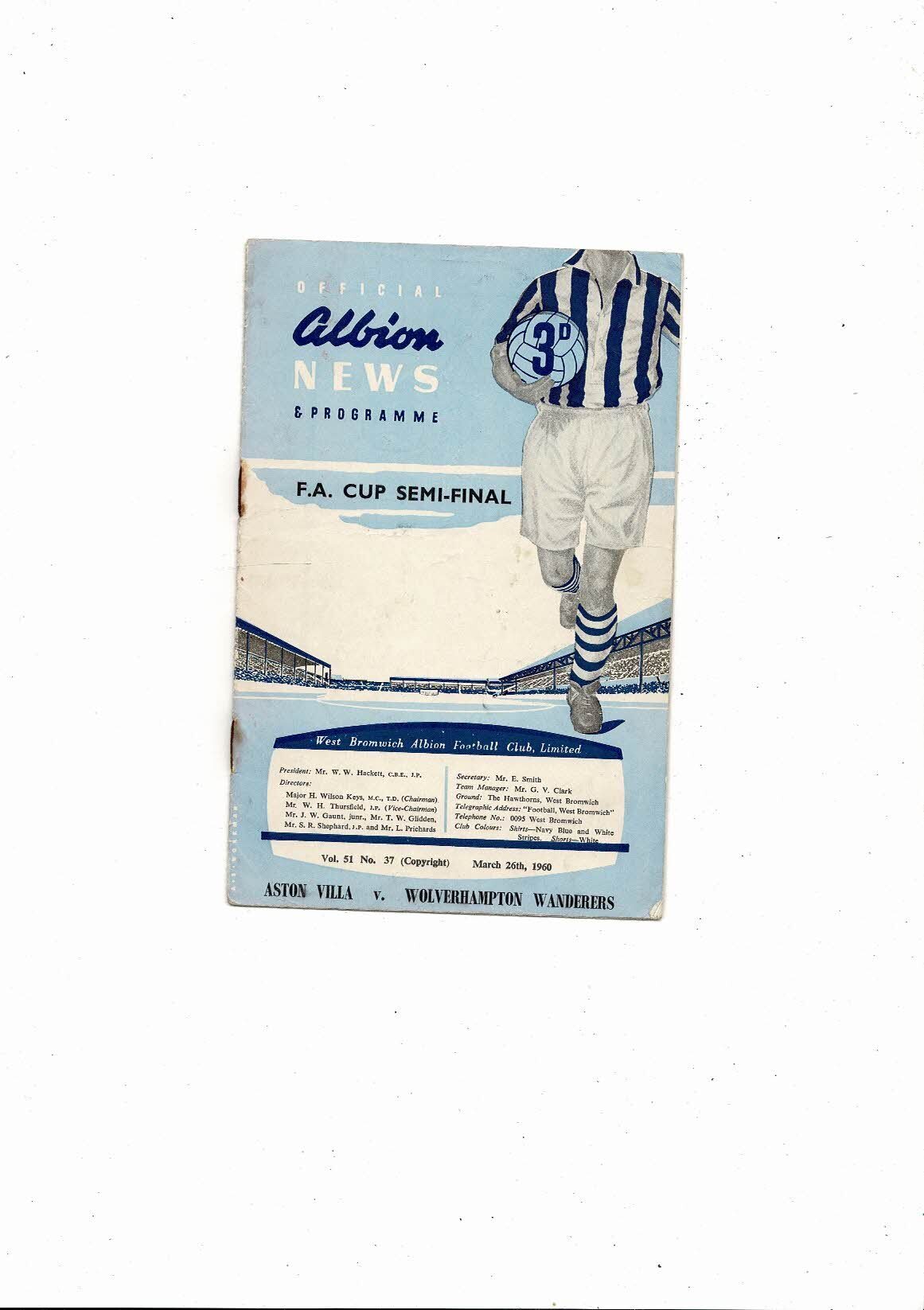 1960 Aston Villa v Wolves FA Cup Semi Final Football Programme @ WBA