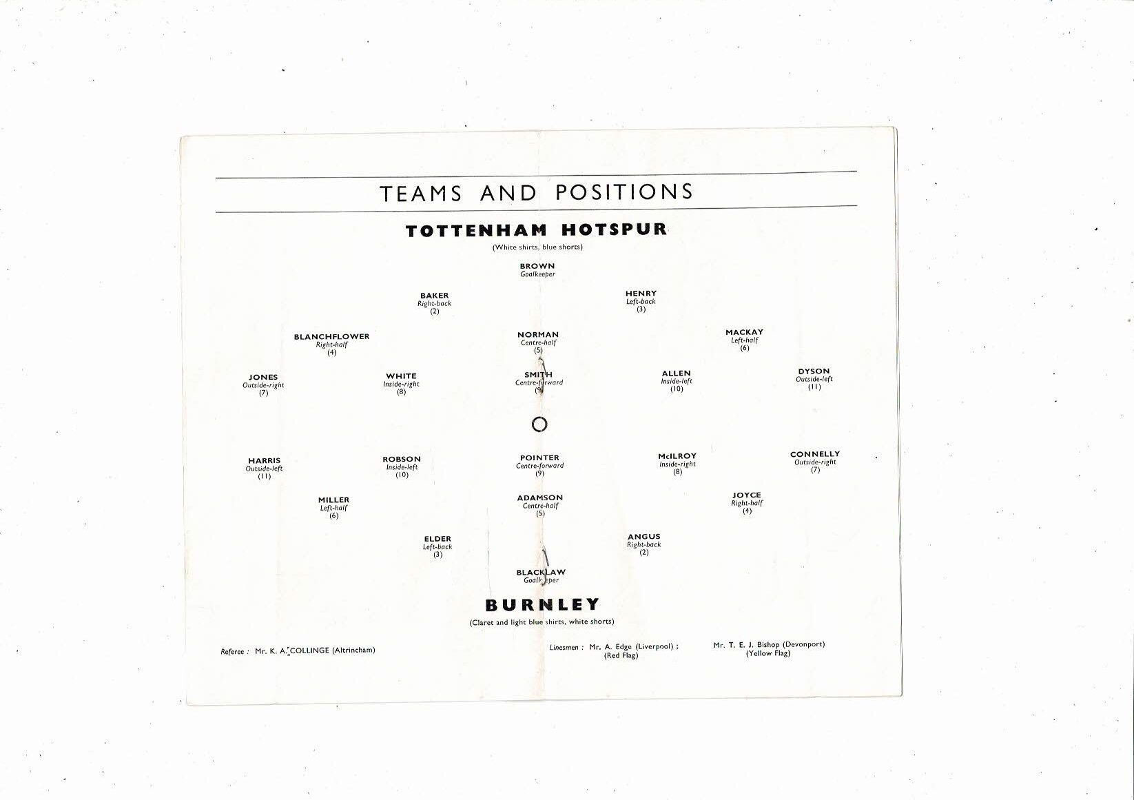 1961 Tottenham Hotspur v Burnley FA Cup Semi Final Football Programme @ Aston Villa