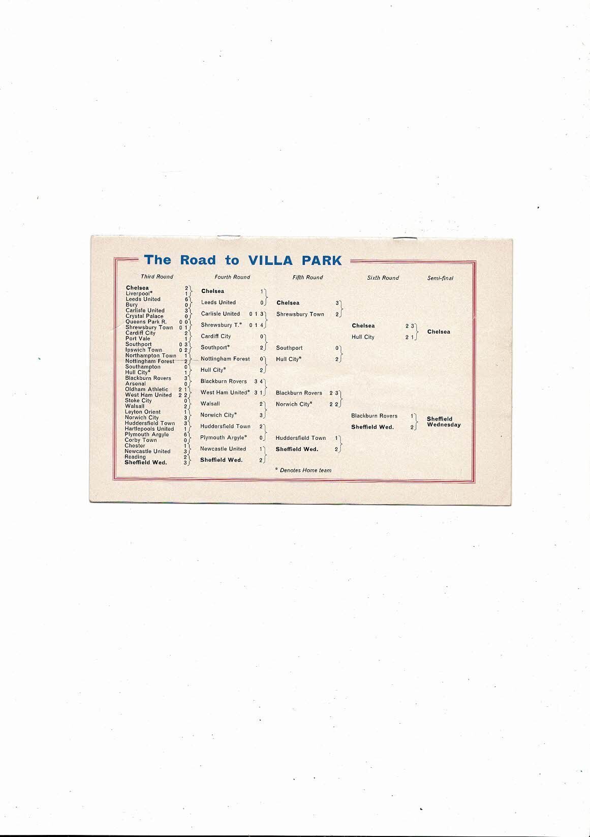 1966 Chelsea v Sheffield Wednesday FA Cup Semi Final Football Programme @ Aston Villa