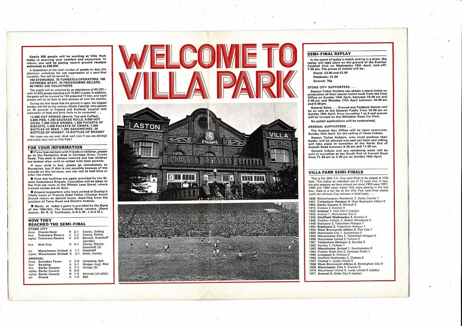 1972 Stoke City v Arsenal FA Cup Semi Final Football Programme @ Aston Villa