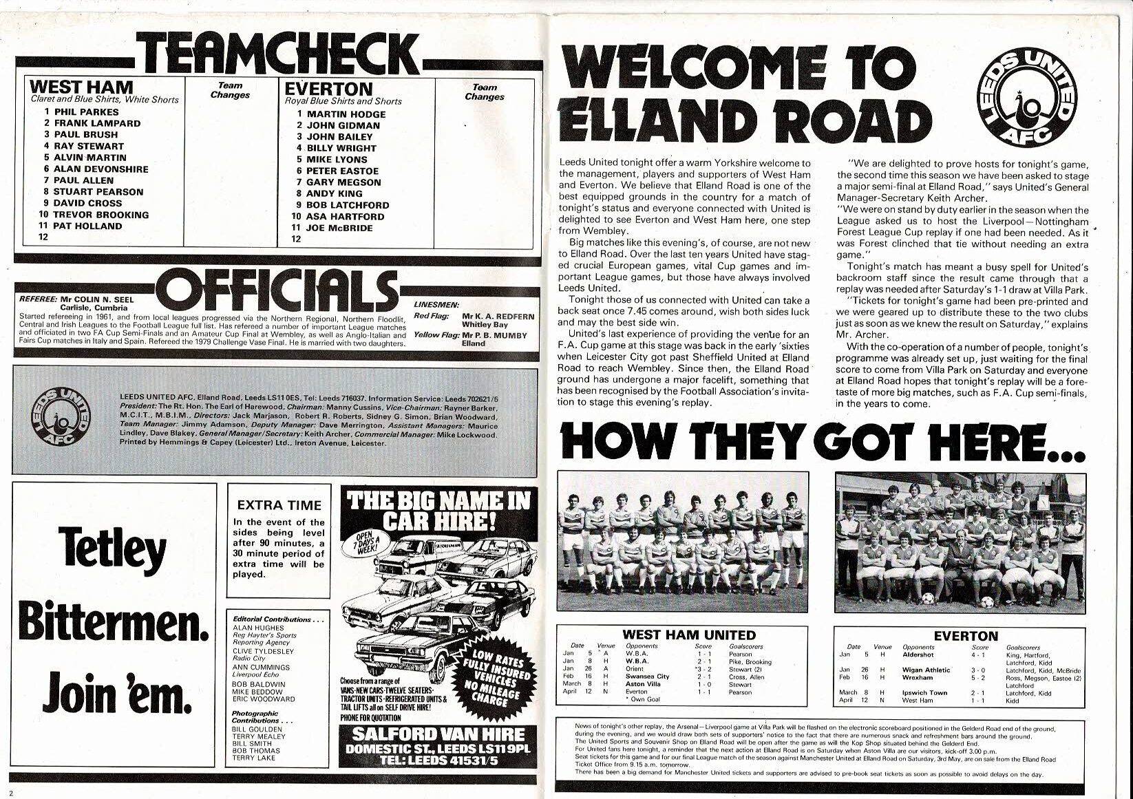 1980 West Ham United v Everton FA Cup Semi Final Replay Football Programme