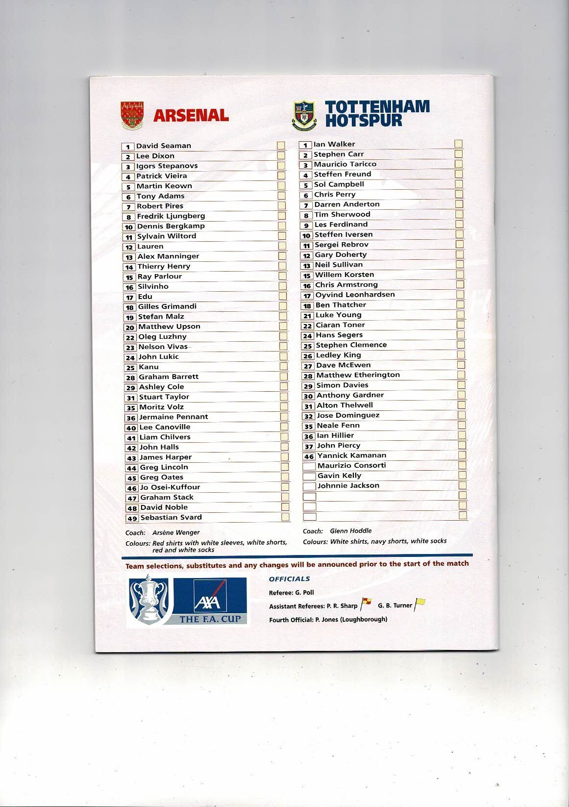 2001 Arsenal v Tottenham Hotspur FA Cup Semi Final Football Programme